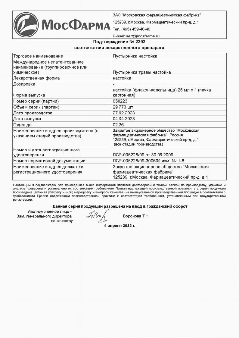Пустырник 25 мл настойка флакон