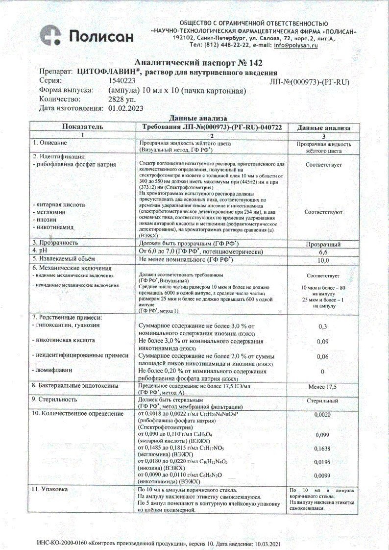 Цитофлавин 10 мл 10 шт раствор для внутривенного введения