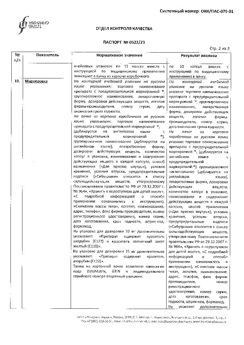 Редуксин Форте 850 мг + 15 мг 60 шт таблетки покрытые пленочной оболочкой