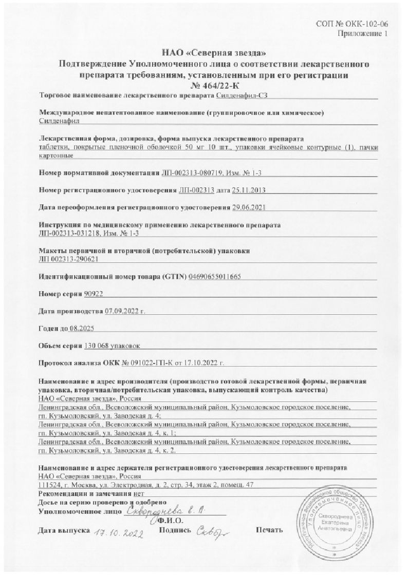 Силденафил-СЗ 50 мг 10 шт таблетки покрытые пленочной оболочкой