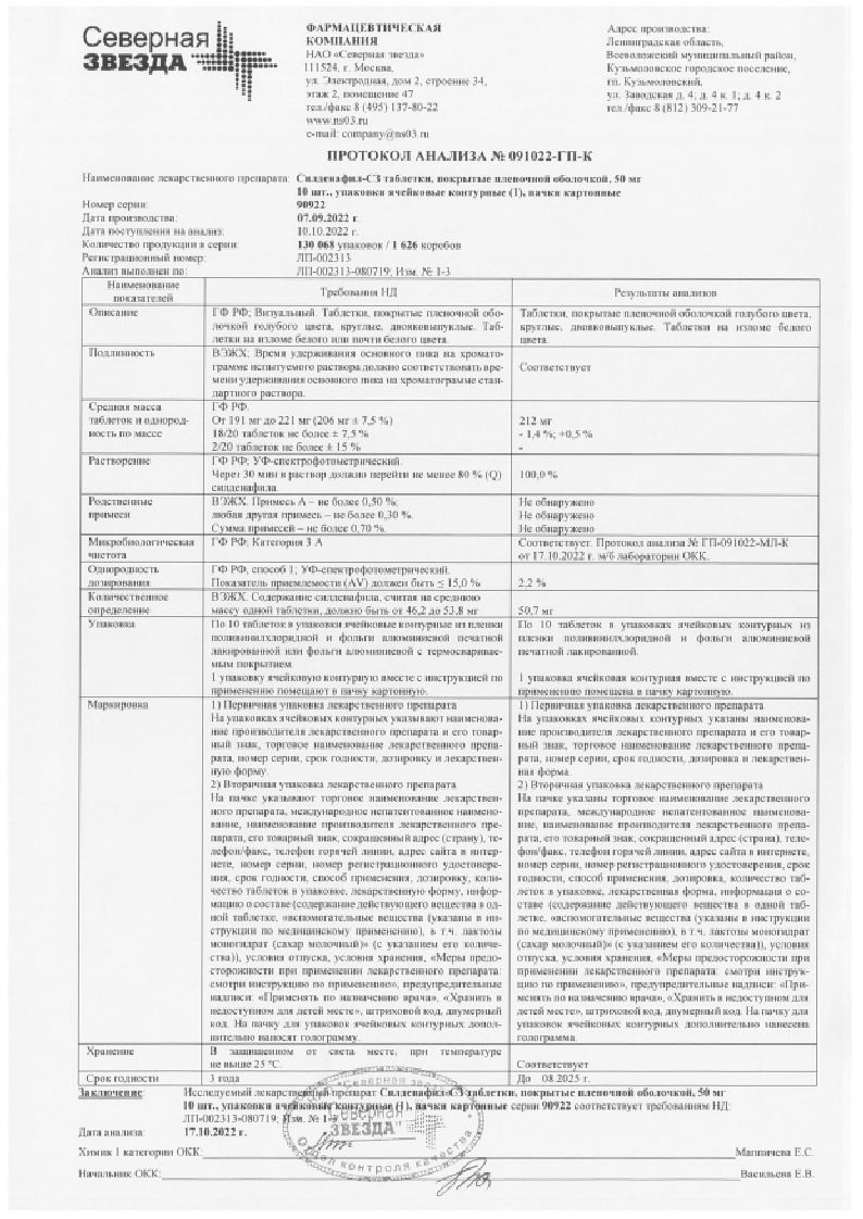 Силденафил 50 мг 10 шт таблетки покрытые пленочной оболочкой