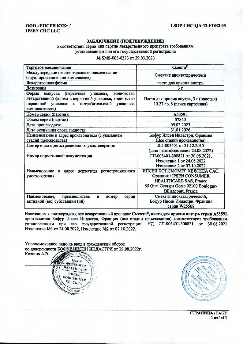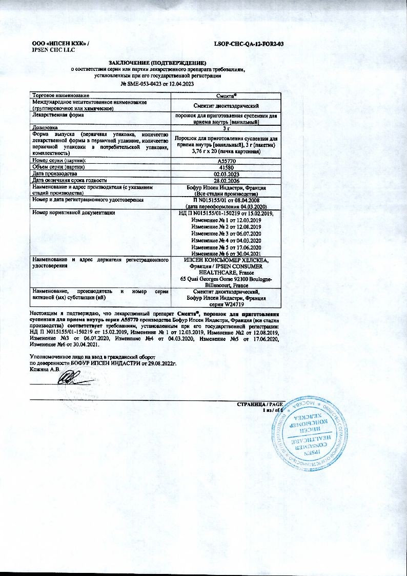 Смекта 3 г 30 шт порошок для приготовления суспензии для приема внутрь клубника