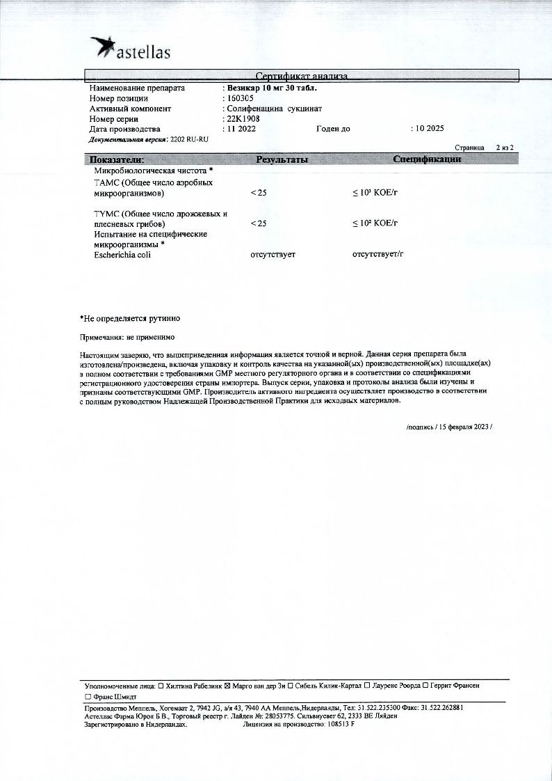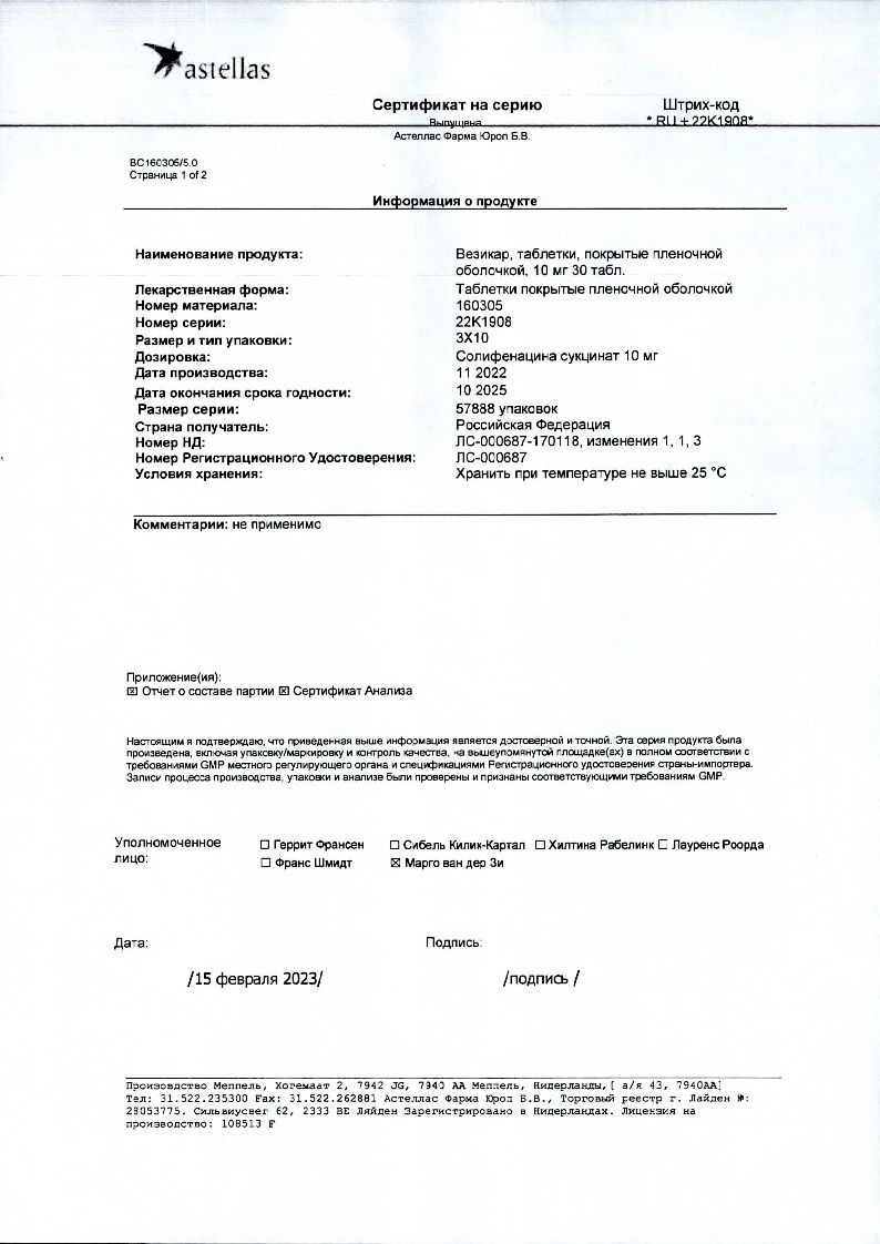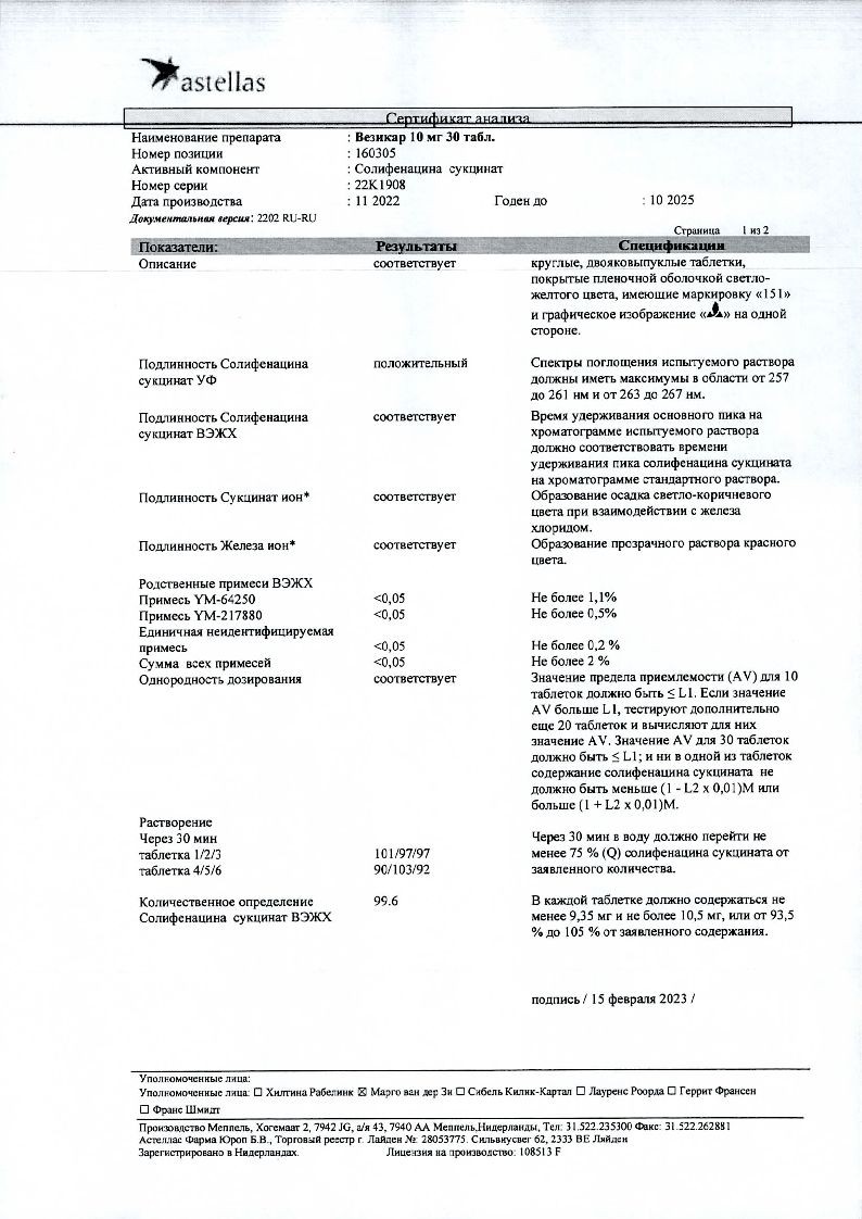 Везикар 10 мг 30 шт таблетки покрытые пленочной оболочкой