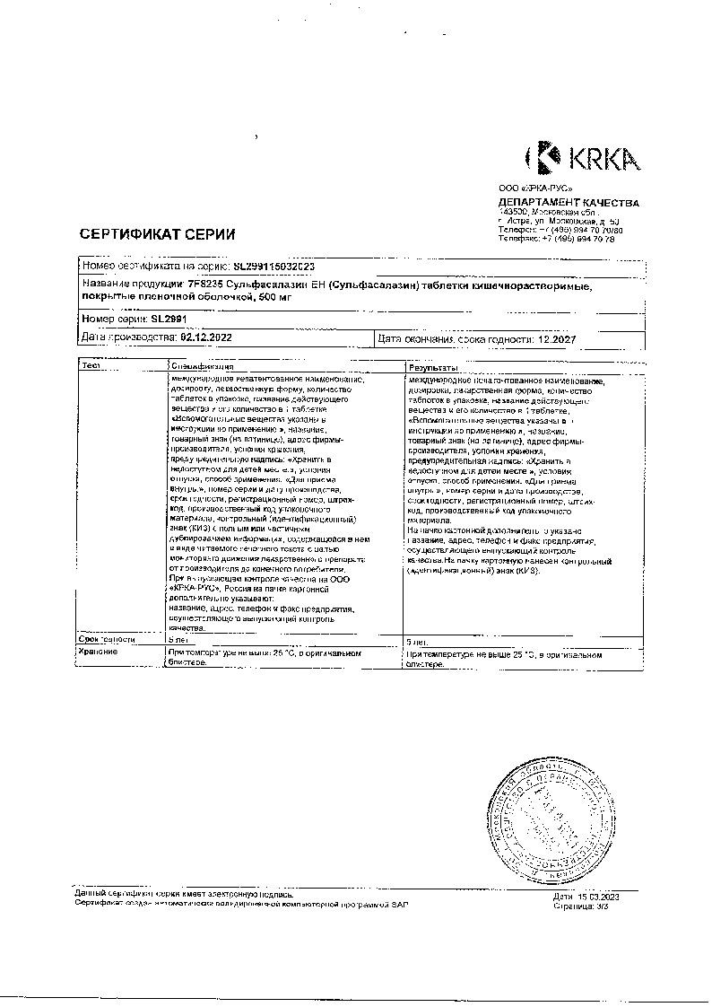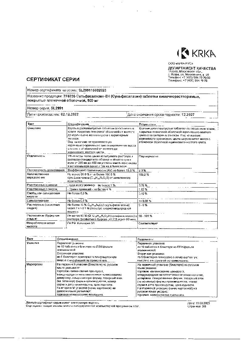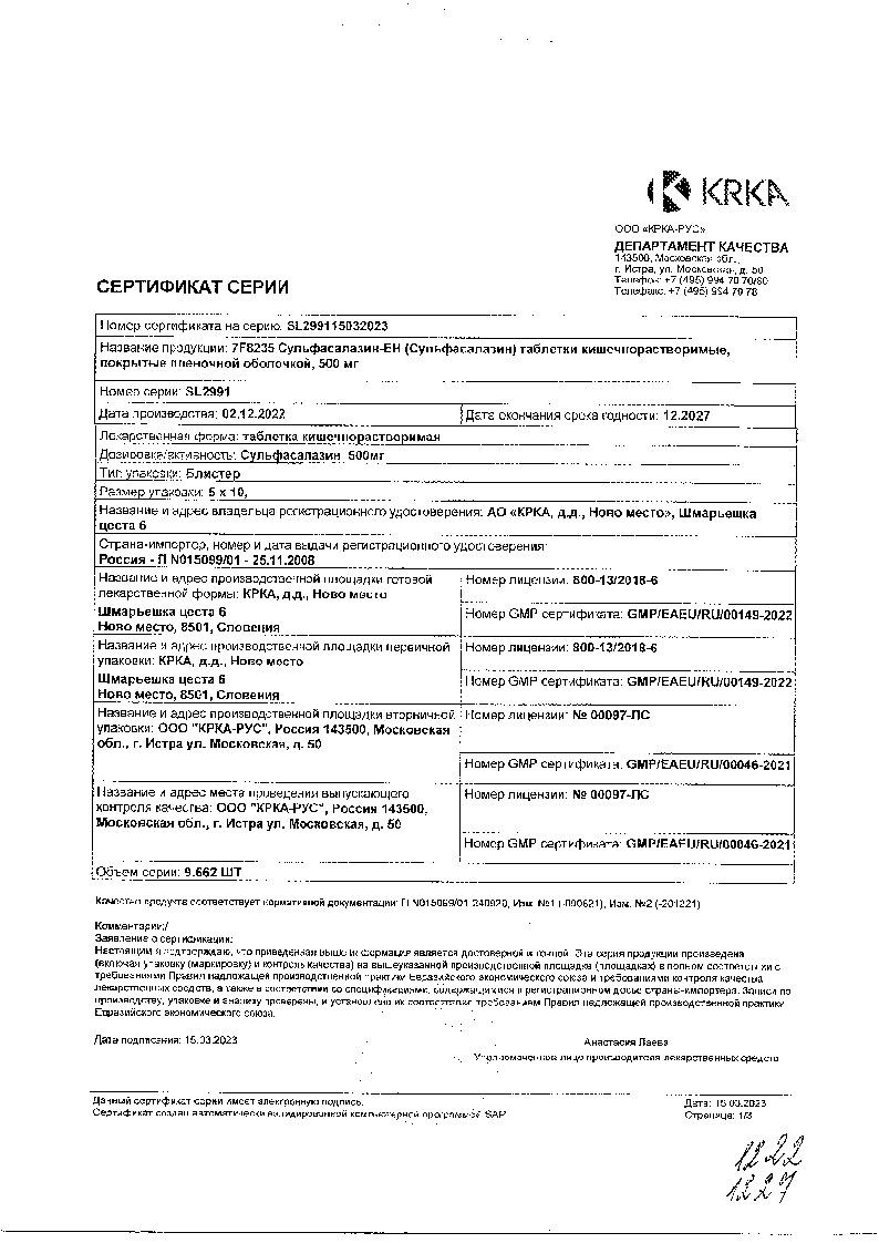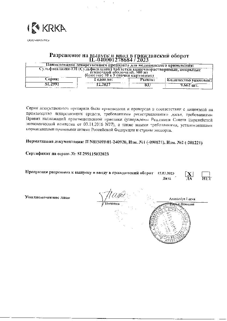 Сульфасалазин 500 мг 50 шт таблетки покрытые пленочной оболочкой