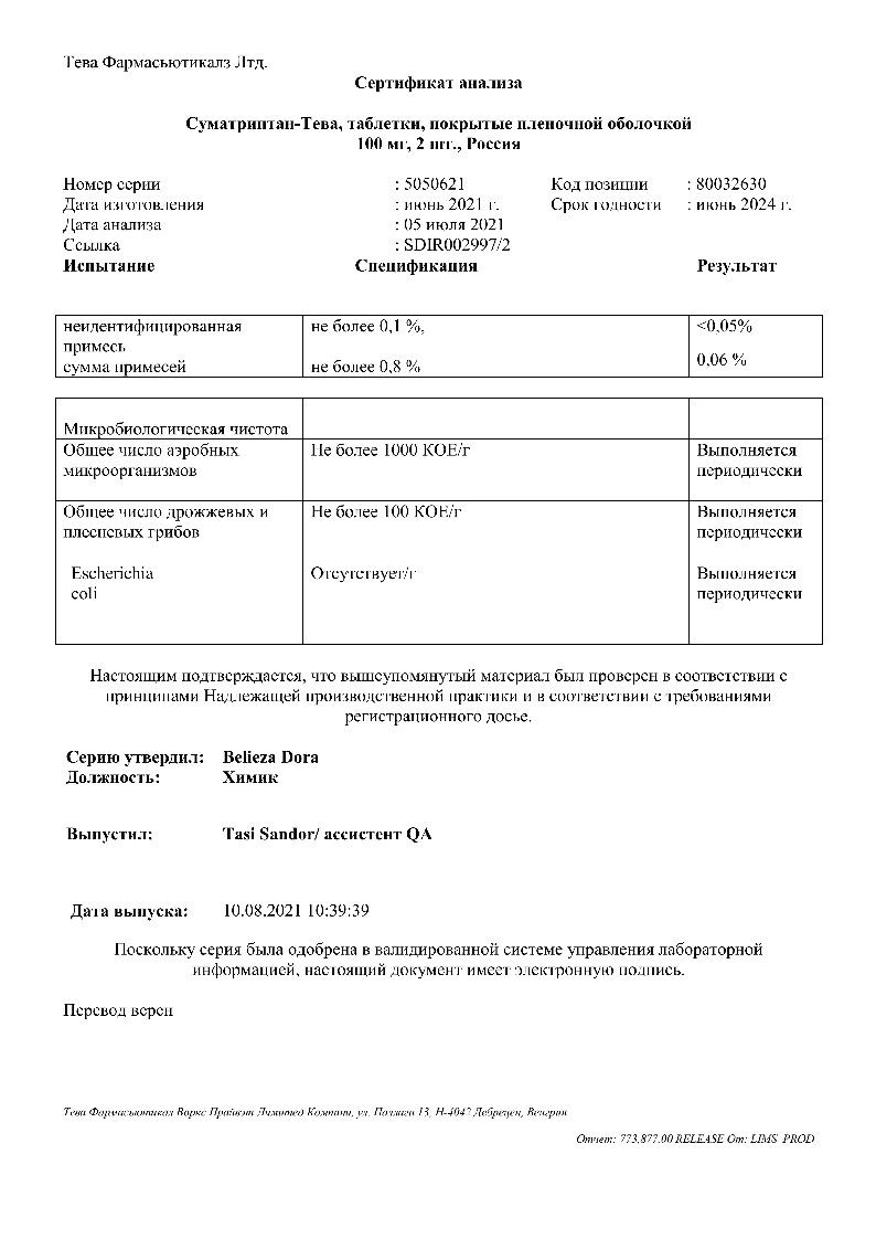 Суматриптан-Тева 100 мг 6 шт таблетки покрытые пленочной оболочкой