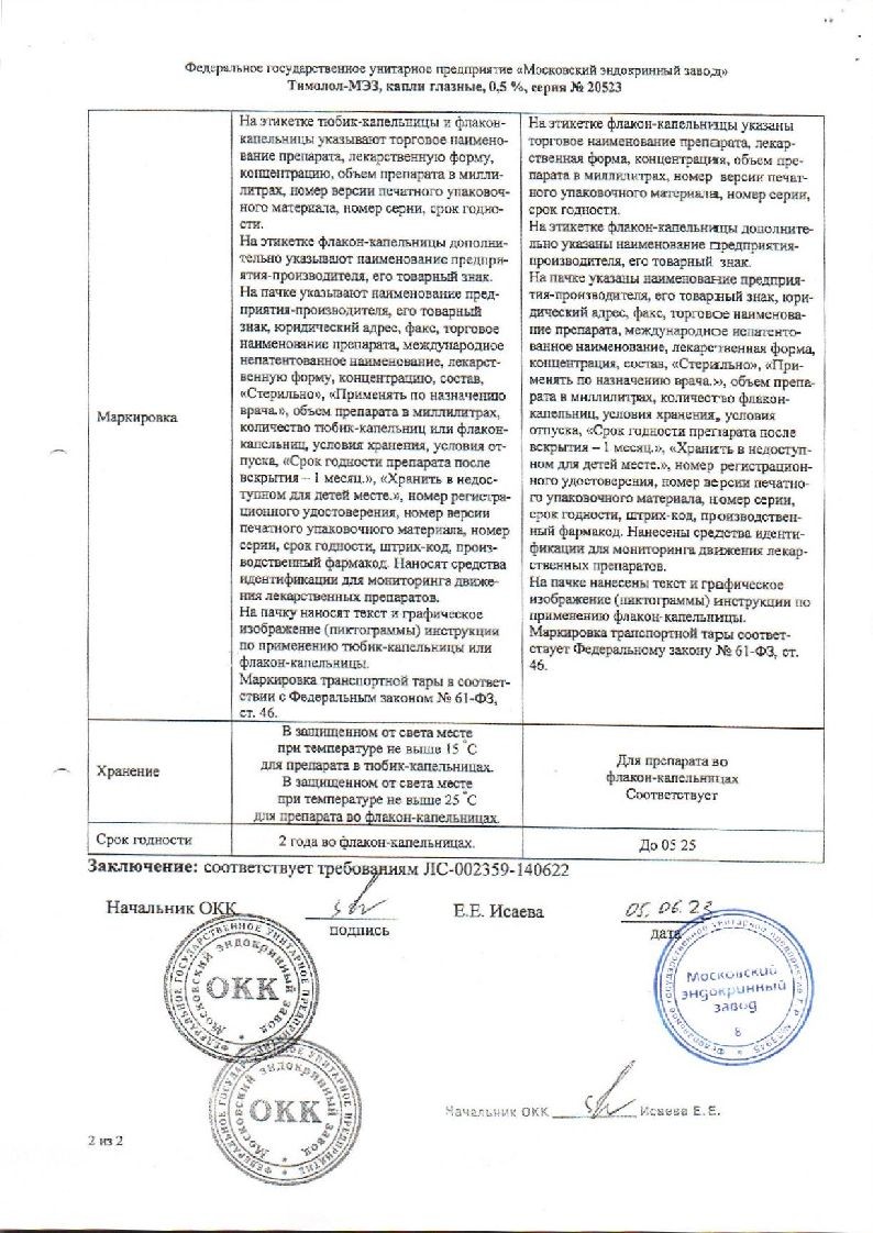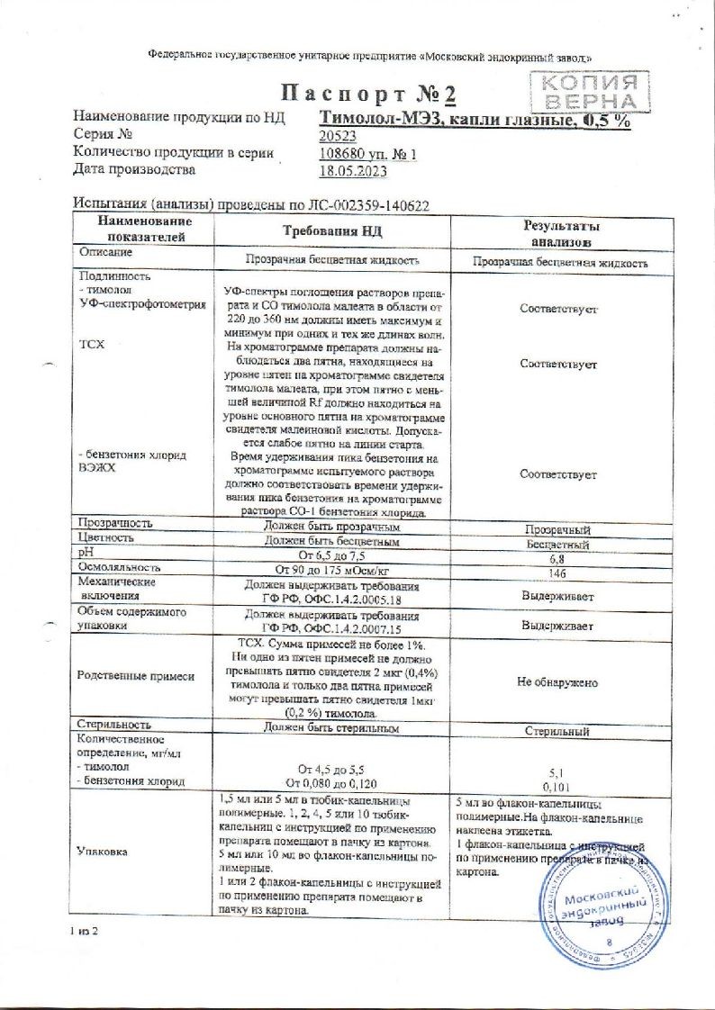 Тимолол-Мэз 0,5% 5 мл капли глазные