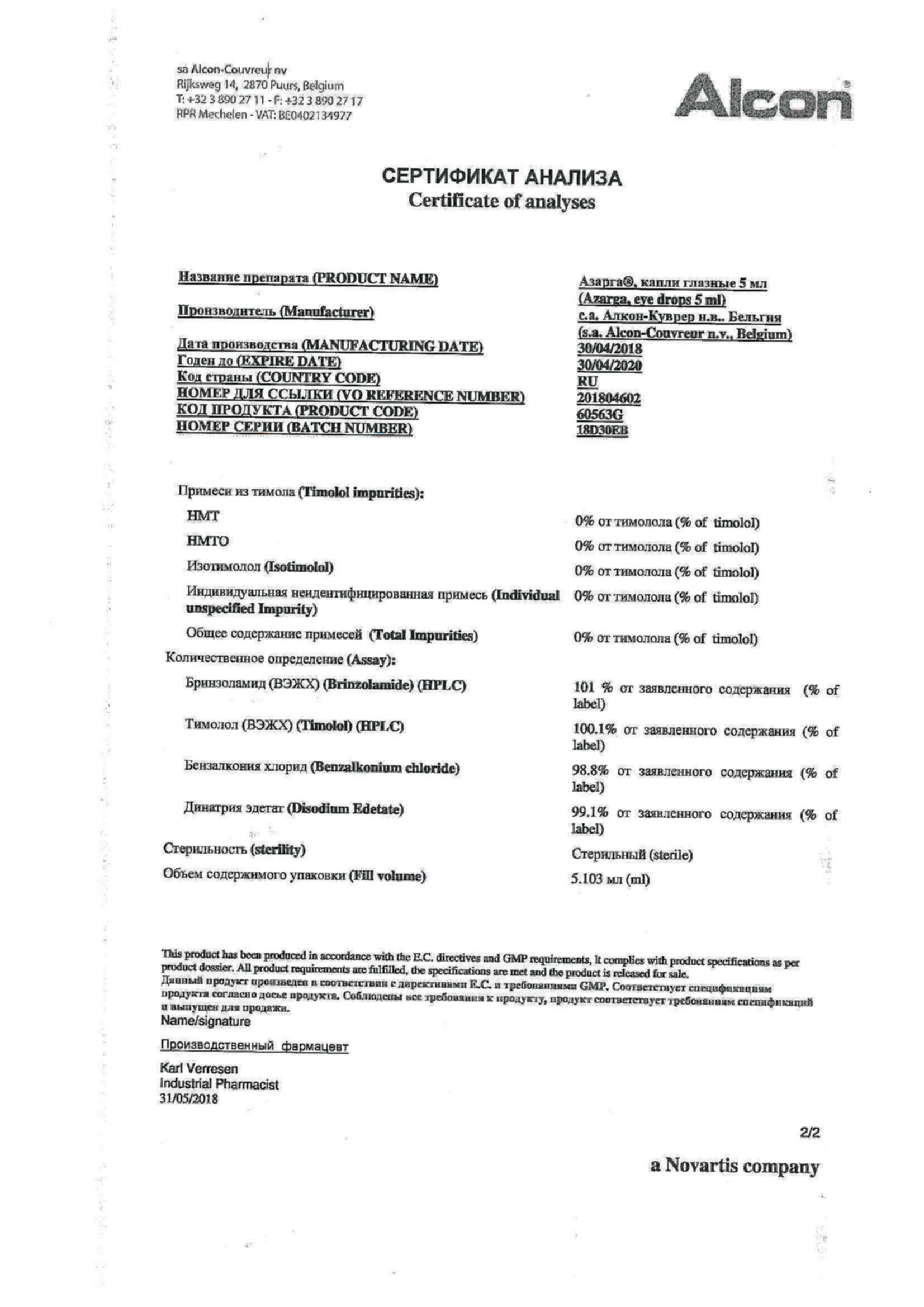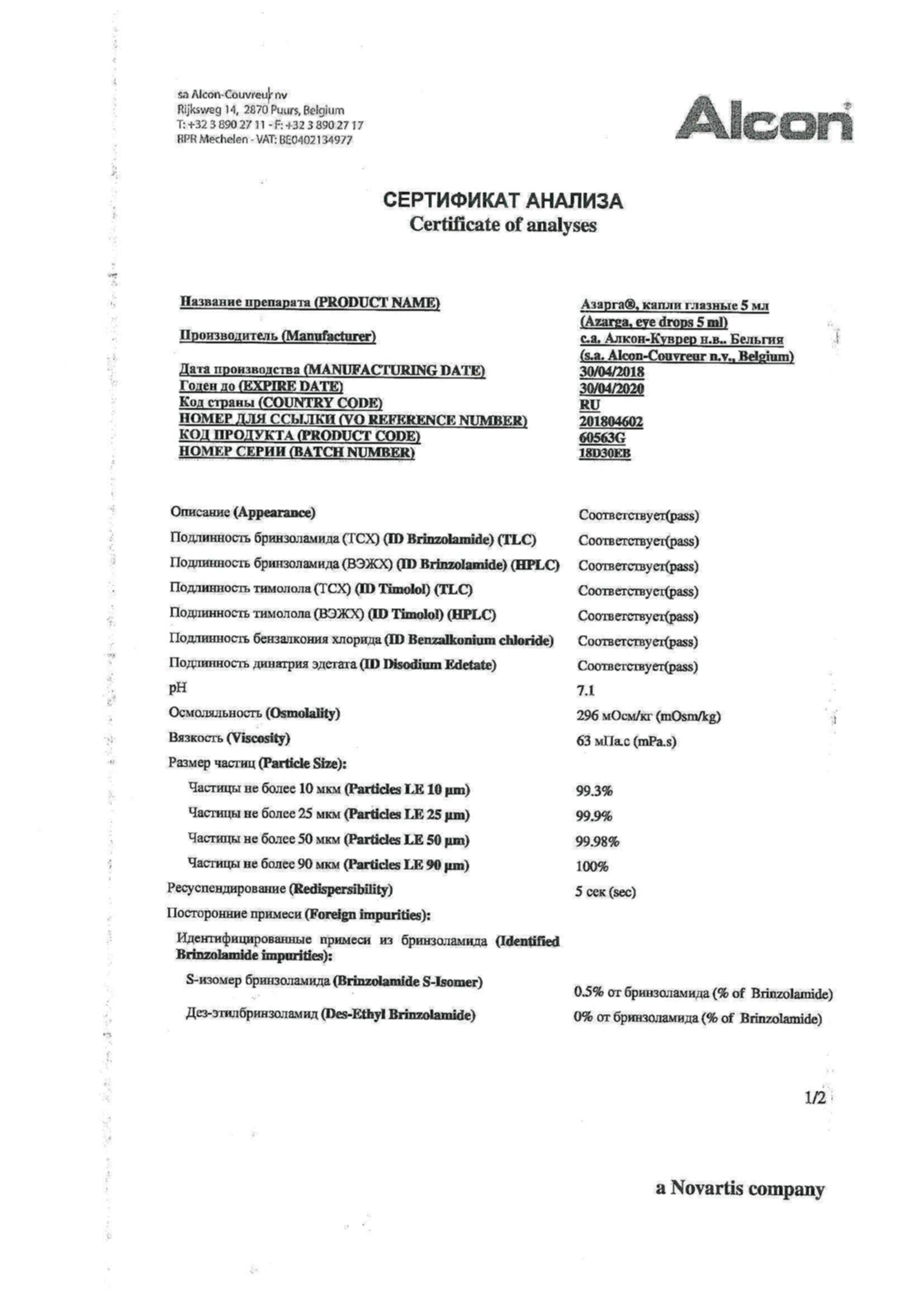 Азарга 5 мл капли глазные
