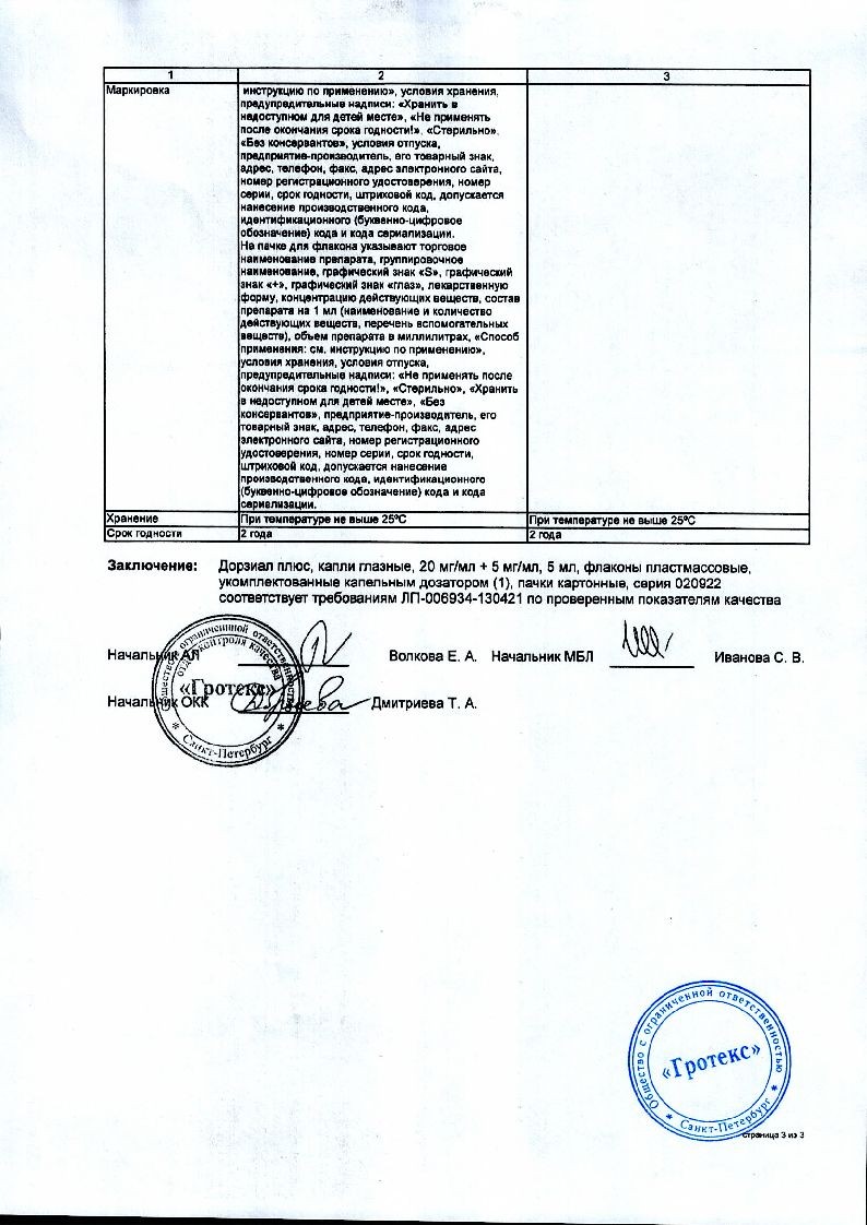 Дорзопт Плюс 20 мг + 5 мг 5 мл капли глазные