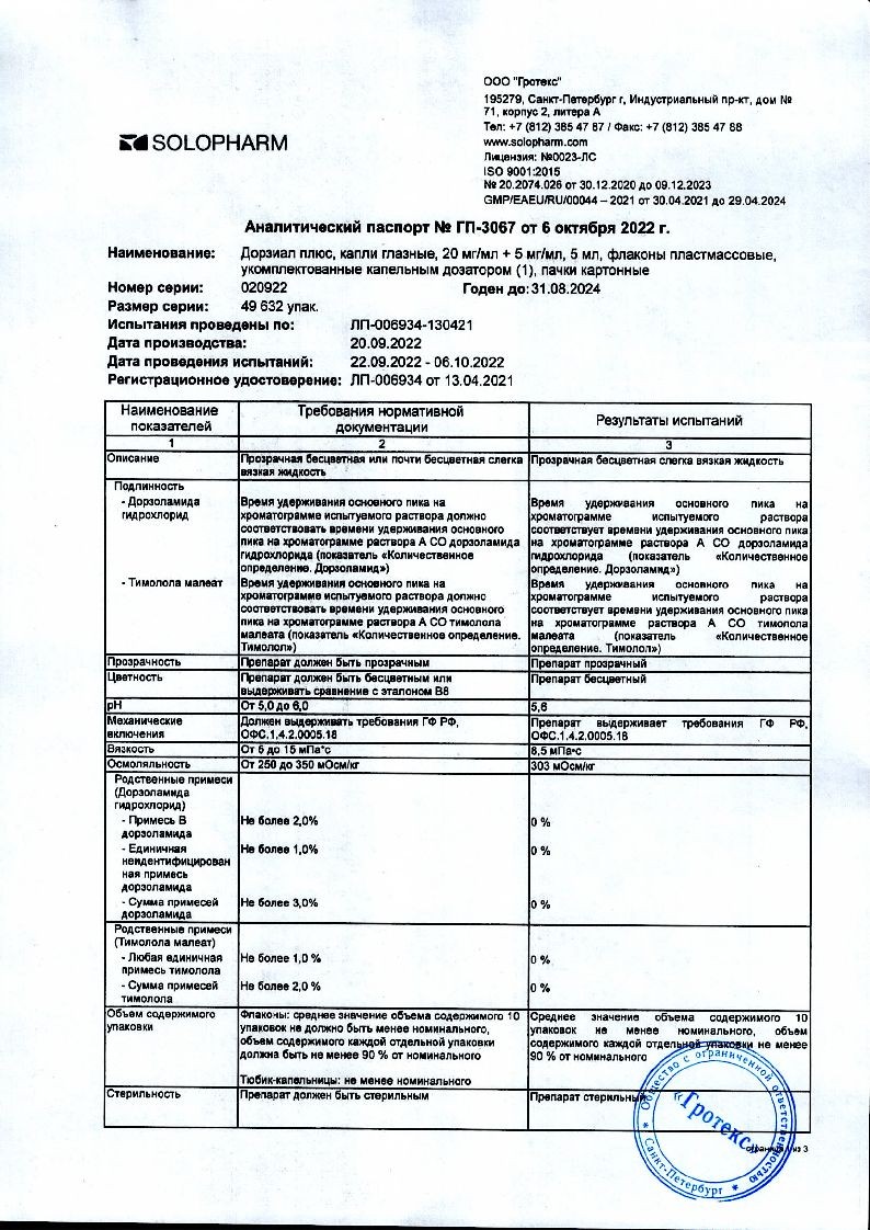 Дорзотимол 20 мг + 5 мг 5 мл капли глазные