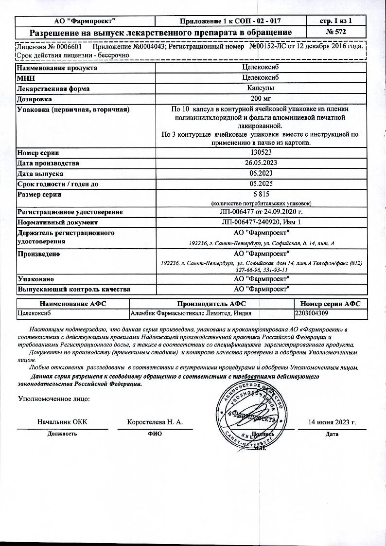 Целекоксиб-Виал 200 мг 30 шт капсулы