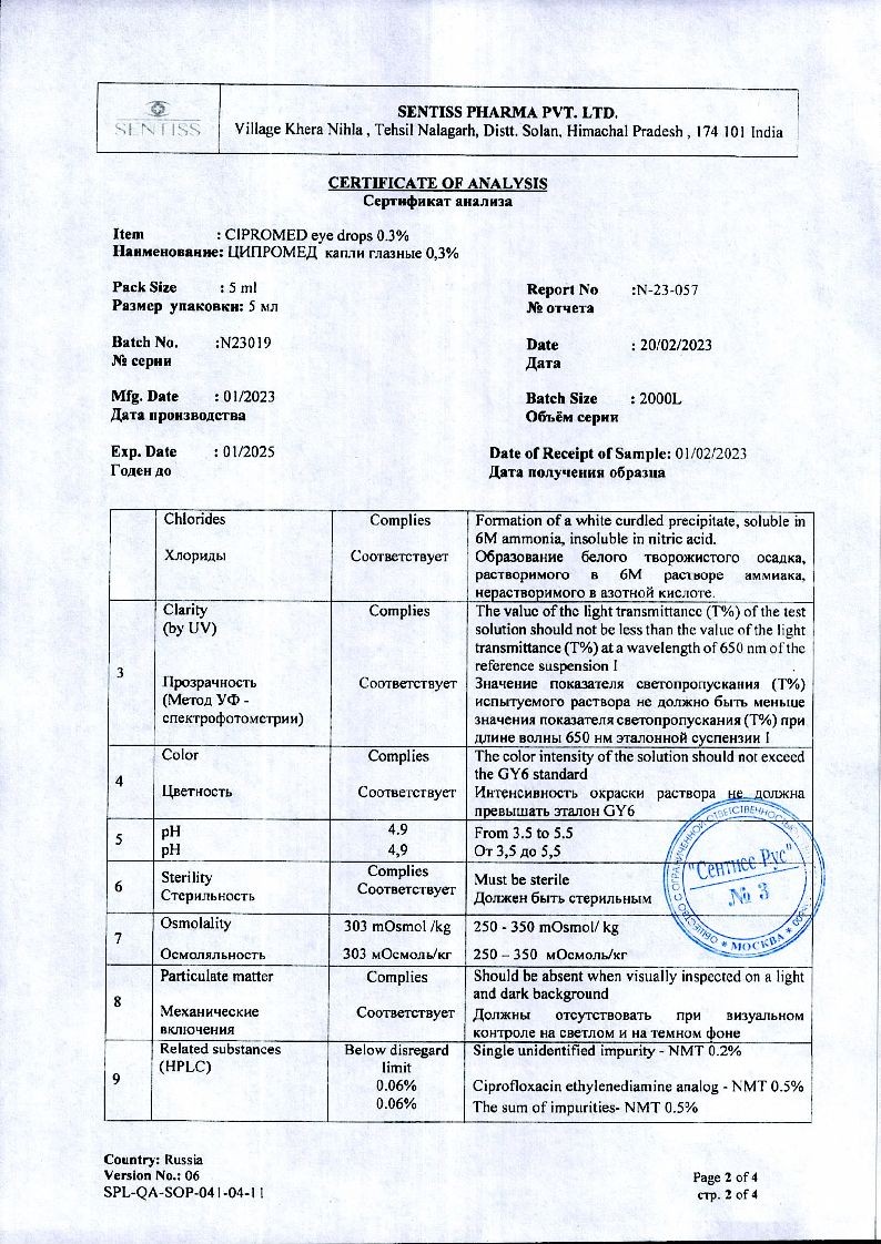 Ципрофлоксацин 2 мг/мл 100 мл 44 шт раствор для инфузий