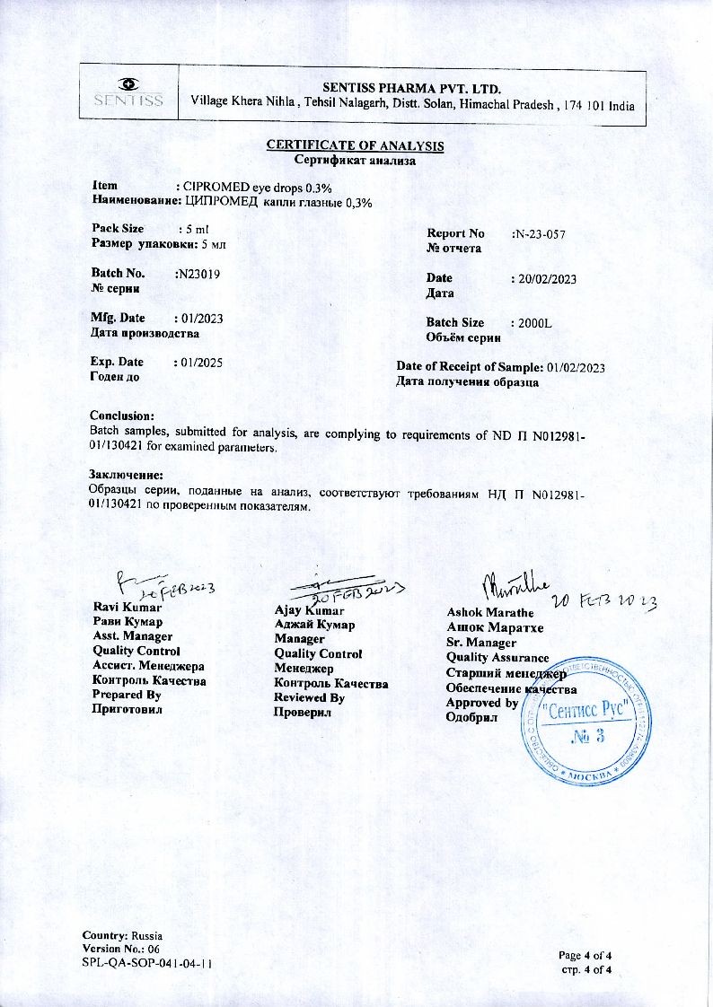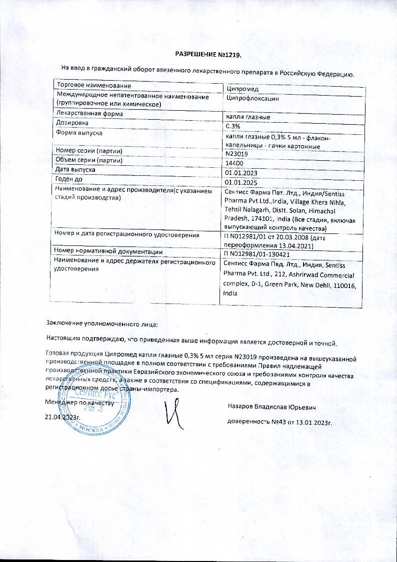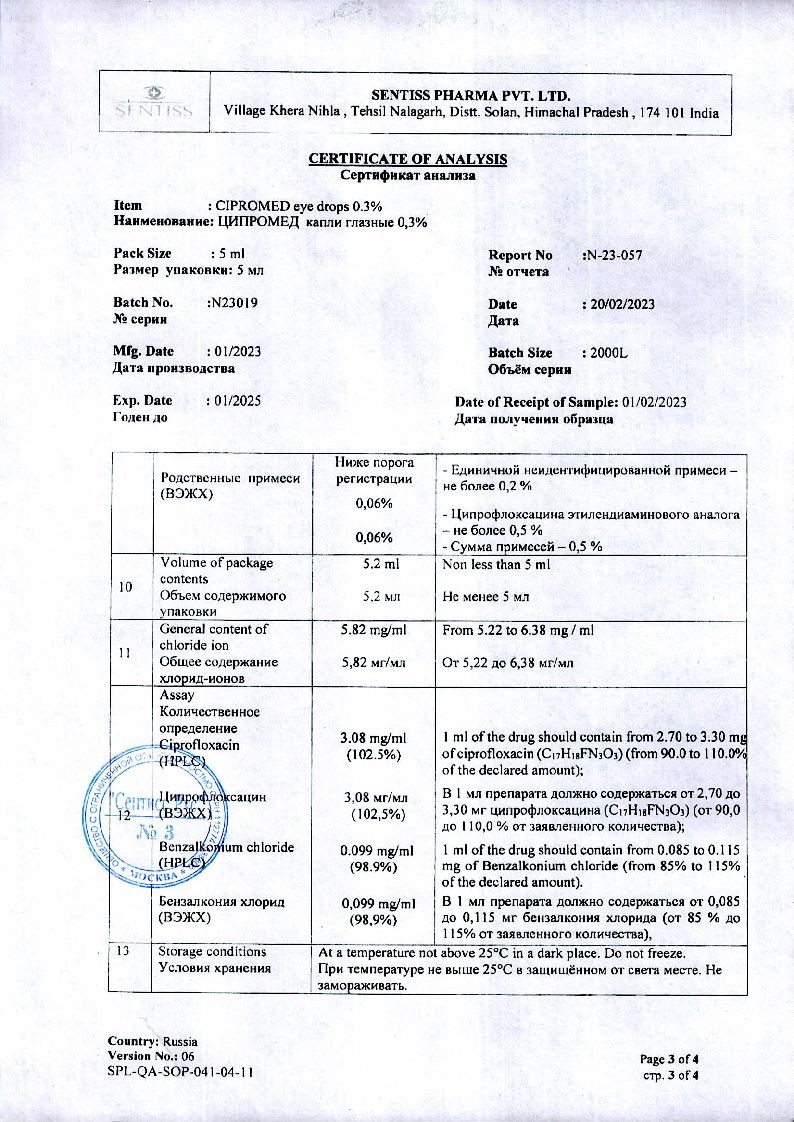 Ципрофлоксацин 0,3% 5 мл капли глазные