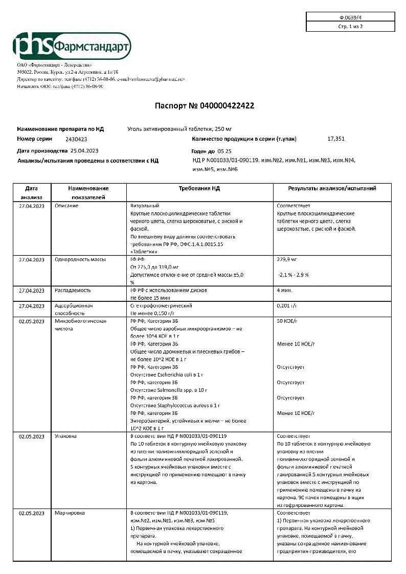 Уголь Активированный-УБФ 250 мг 50 шт таблетки