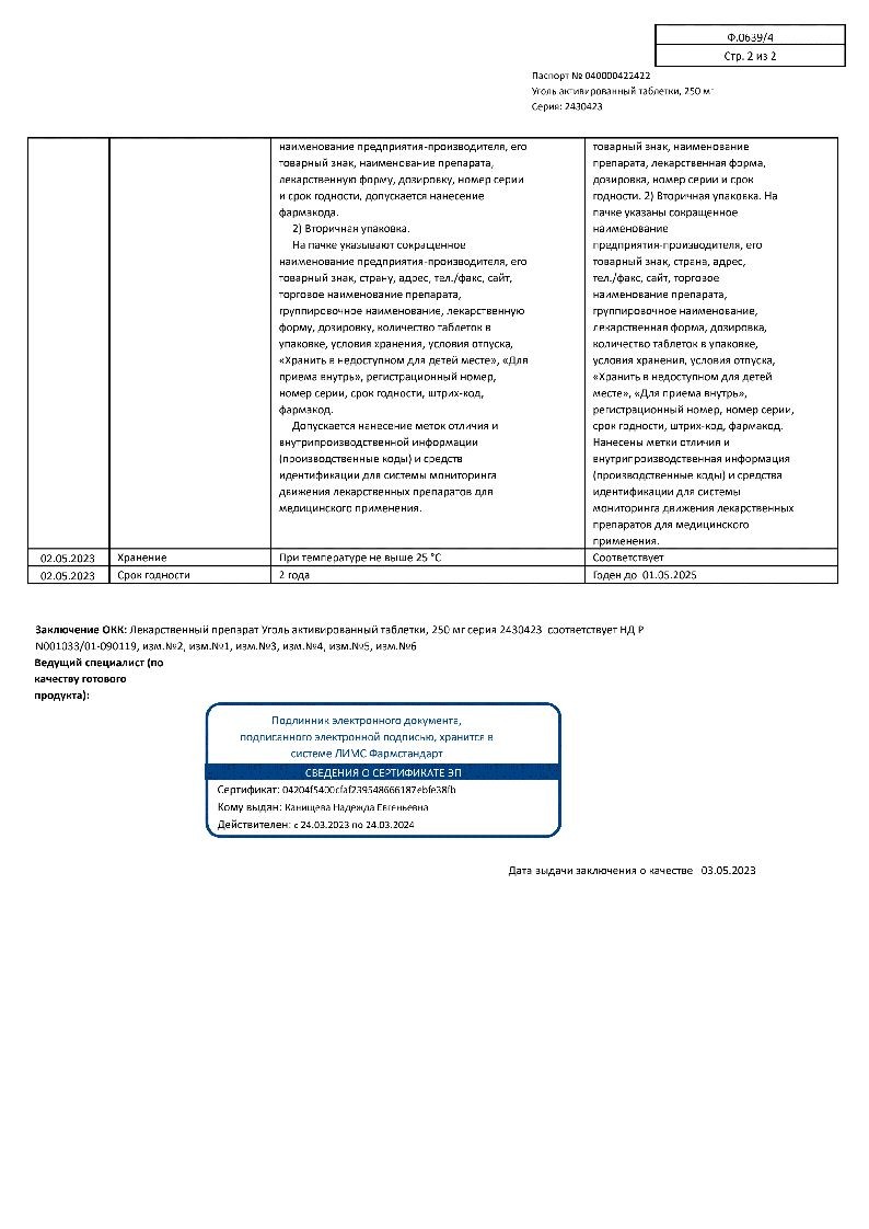 В корзинуУголь Активированный 250 мг 20 шт таблетки