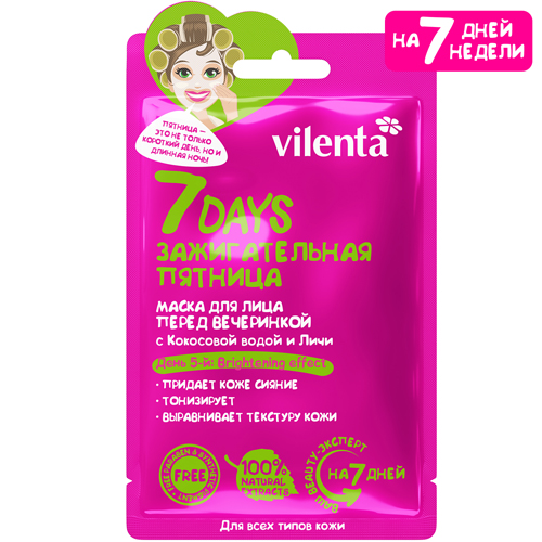Маска Vilenta 7 Days Зажигательная пятница с кокосовой водой и личи- это пятый шаг к идеальной коже, о которой Вы так давно мечтали!.