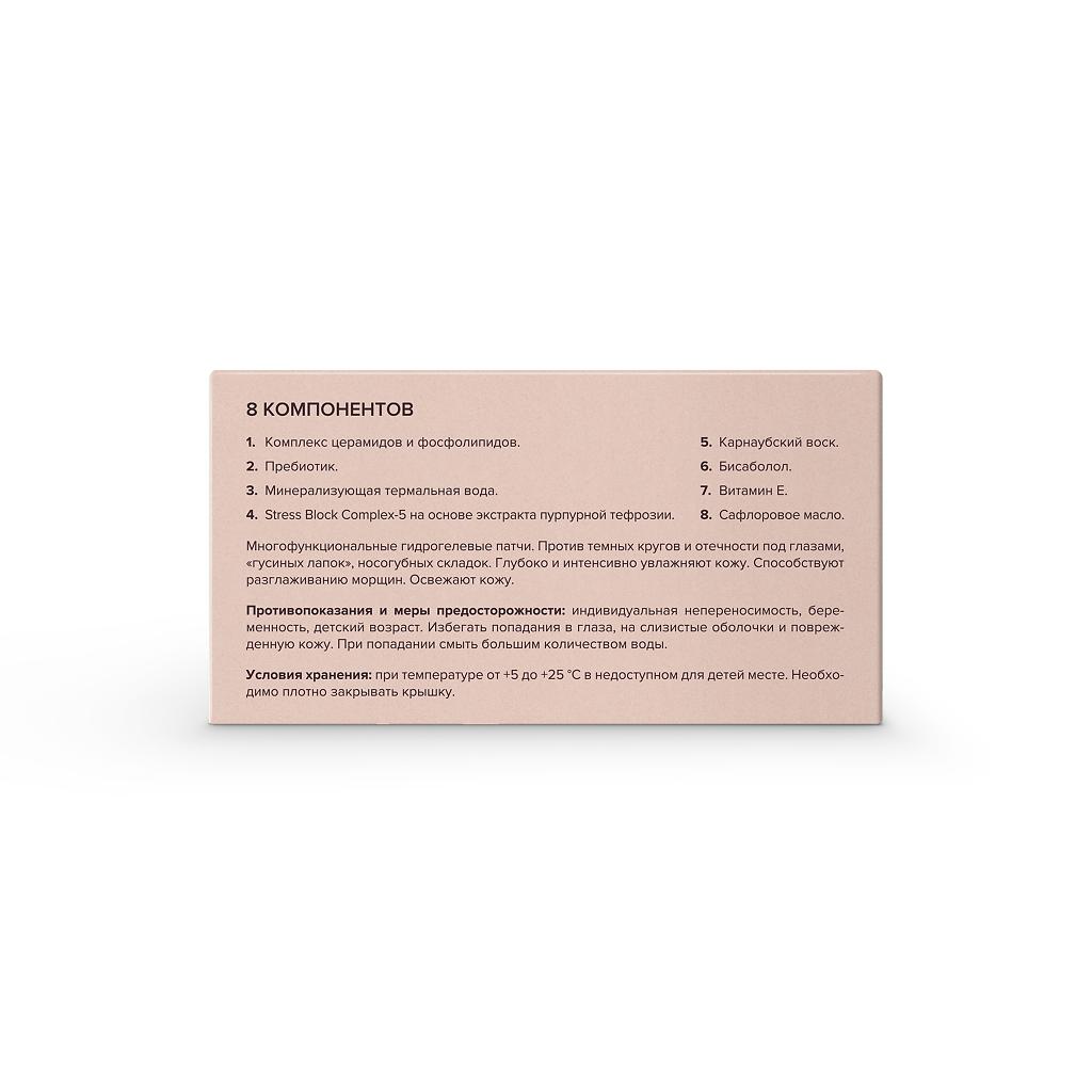 Многофункциональные гидрогелевые патчи. Подходят сухой и сверхчувствительной коже 25+. Против темных кругов и отечности под глазами, «гусиных лапок», носогубных складок. Глубоко и интенсивно увлажняют кожу. Способствуют разглаживанию морщин. Освежают кожу.