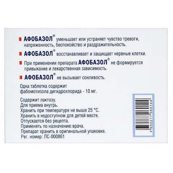 Афобазол® не вызывает мышечную слабость, сонливость и не обладает негативным влиянием на концентрацию внимания и память. При его применении не формируется привыкание, лекарственная зависимость и не развивается синдром "отмены".