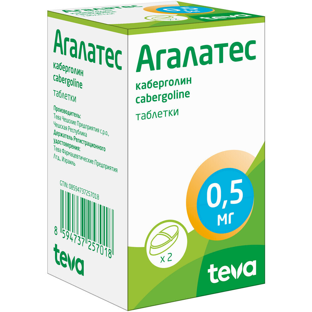 Фармакокинетика каберголина существенно не меняется при умеренной или тяжелой почечной недостаточности. Она не изучена у пациентов с терминальной стадией почечной недостаточности или при гемодиализе. Поэтому у таких пациентов препарат Агалатес следует применять с осторожностью. Влияние алкоголя на общую переносимость препарата Агалатес не установлено.