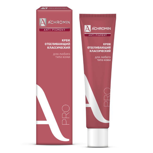 «Ахромин» предназначен для удаления и профилактики гиперпигментации — веснушек, пятен после беременности, возрастных пигментных пятен, слишком темного загара. Используется для защиты кожи от вредного воздействия солнечных лучей.