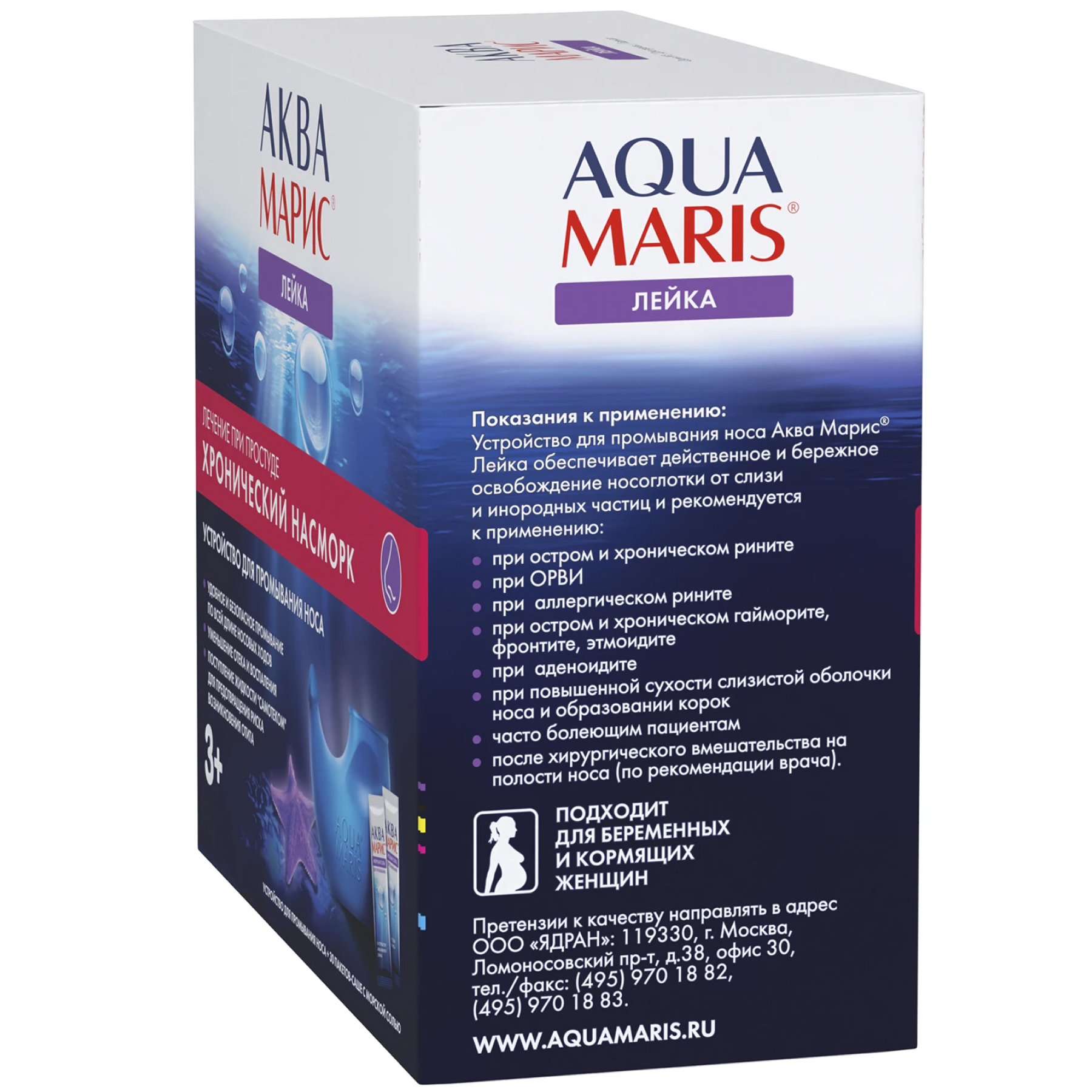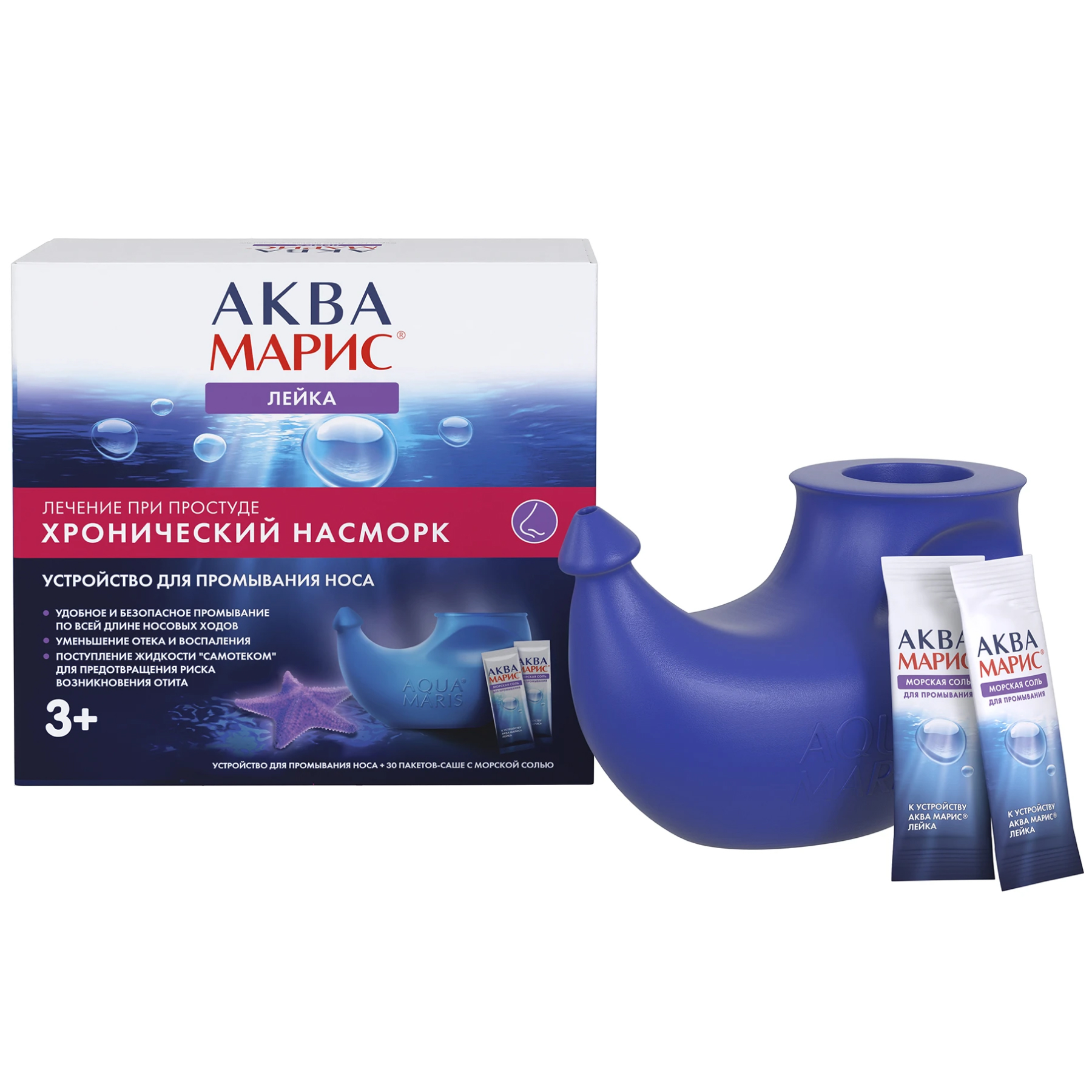 При промывании полости носа с помощью устройства Аква Марис® Лейка с поверхности слизистой носа удаляется патологическое содержимое вместе с вирусами, бактериями, аллергенами и пылью, уменьшается отек и воспаление, повышается тонус капилляров.