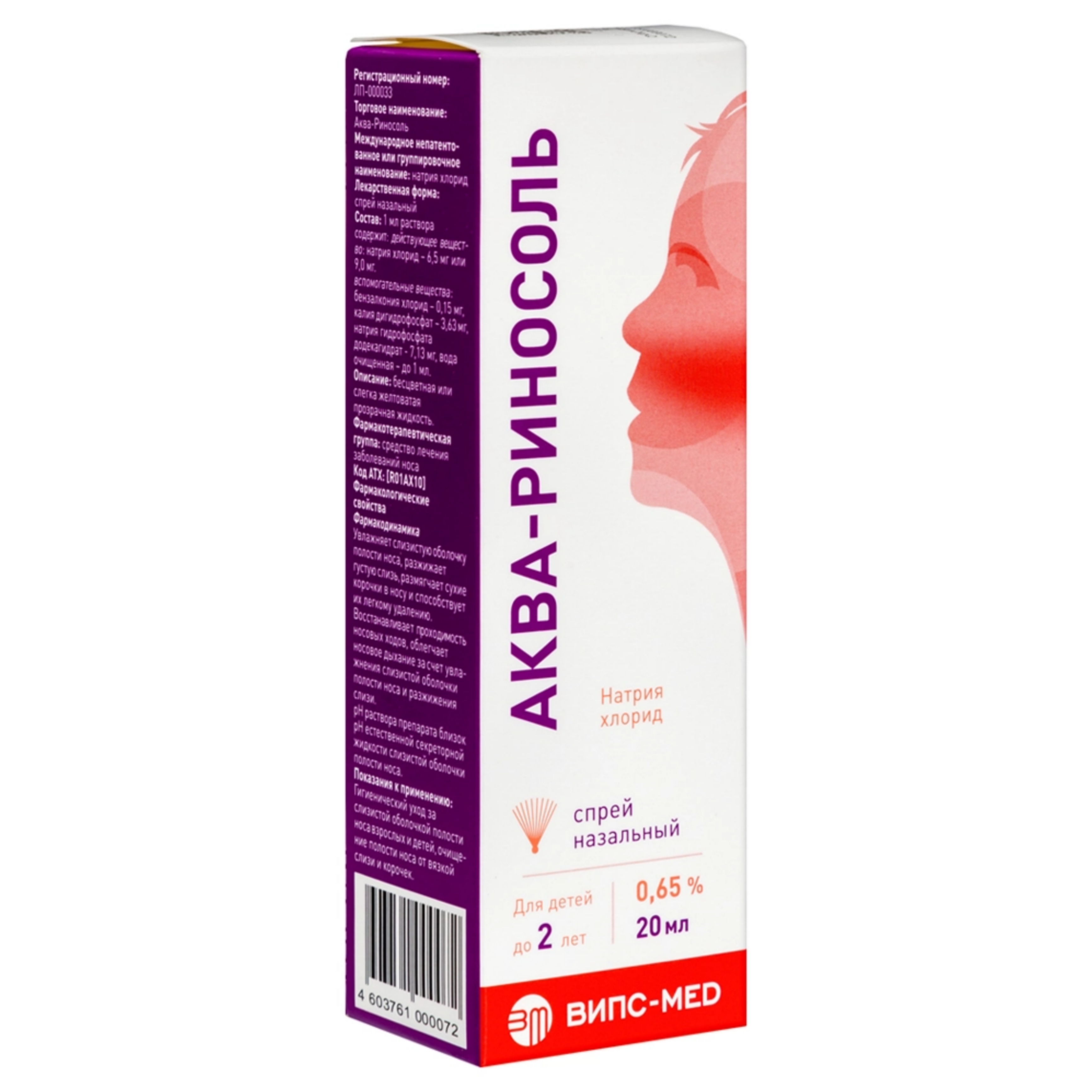 Аква-Риносоль 0,9 % 20 мл аэрозоль назальный
