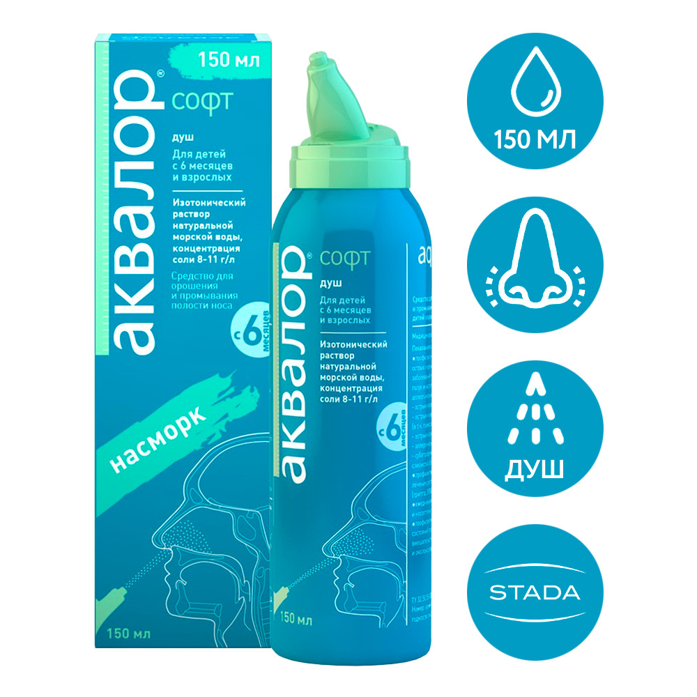 После промывания полости носа средством для орошения и промывания полости носа для детей и взрослых Аквалор софт или Аквалор софт мини повышается терапевтическая эффективность лекарственных средств, наносимых на слизистую оболочку полости носа, сокращается продолжительность респираторных заболеваний, снижается риск распространения инфекции в околоносовые пазухи и полость уха.