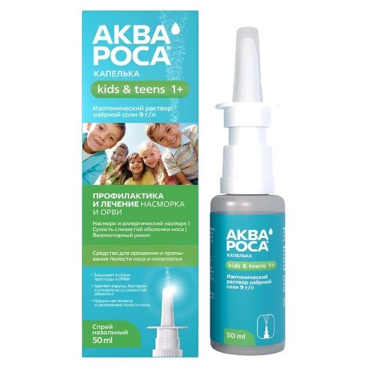 АКВАРОСА КАПЕЛЬКА - это средство на основе рапы (озерной соли) для орошения и промывания полости носа и носоглотки. Изотонический раствор 9 г/л.