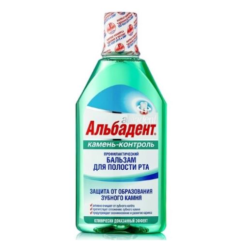 Альбадент - бальзам для полости рта "Камень-контроль" - это средство для профилактики образования зубного налета и камней в полости рта. Бальзам состоит из натуральных компонентов, включая ромашку, эвкалипт и ментол, которые устраняют запах изо рта, освежают дыхание и оказывают антибактериальное действие. Кроме этого, Albadent укрепляет зубы и десны, снижает чувствительность зубов и способствует устранению зубного налета. Применение Albadent дважды в день поможет сохранить здоровье полости рта и даст свежее и приятное дыхание. Бальзам представлен в большой упаковке объемом 400 мл.