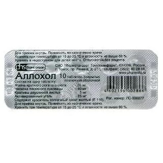 Активные вещества: желчь крупного рогатого скота - 80 мг, чеснока посевного луковицы - 40 мг, крапивы двудомной листья - 5 мг, активированный уголь - 25 мг.