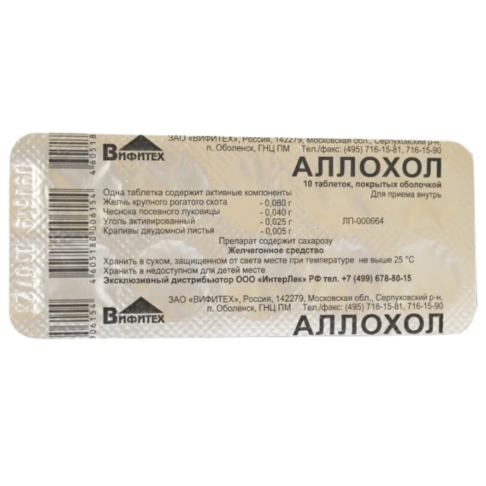 Сертификаты и лицензии “Аллохол 10 шт таблетки покрытые оболочкой”