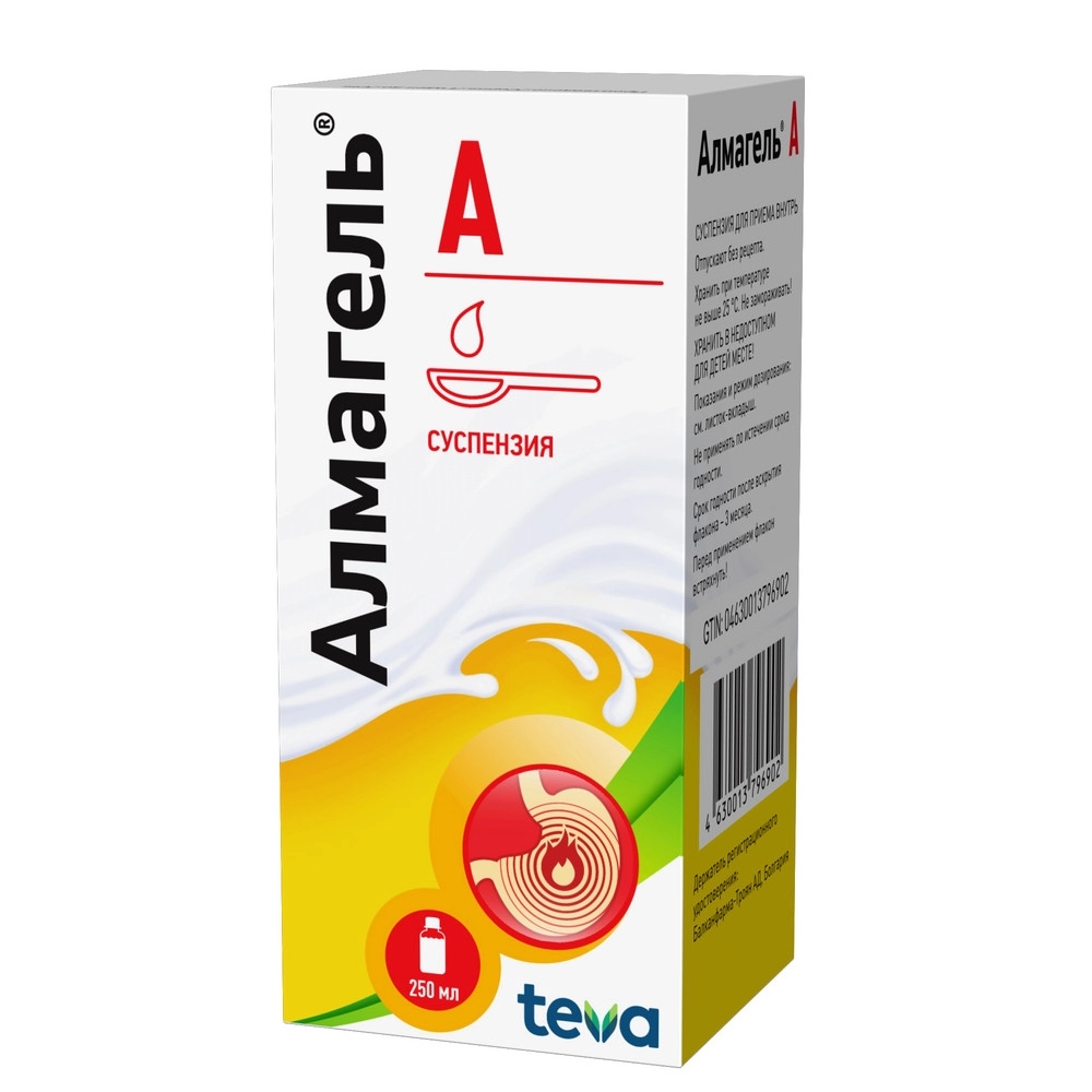 Алмагель® А - лекарственное средство, представляющее собой сбалансированную комбинацию алгелдрата (алюминия гидроксида), магния гидроксида и бензокаина. Алмагель® А нейтрализует свободную соляную кислоту в желудке, снижает активность пепсина, что приводит к уменьшению переваривающей активности желудочного сока. Оказывает обволакивающее, адсорбирующее действие. Защищает слизистую оболочку желудка за счет стимулирования синтеза простагландинов (цитопротективное действие). Это предохраняет слизистую оболочку от воспалительных и эрозивно-геморрагических поражений в результате применения раздражающих и ульцерогенных агентов, таких как этиловый спирт и нестероидные противовоспалительные препараты (например, индометацин, диклофенак, аспирин, ацетилсалициловая кислота, кортикостероидные препараты). Терапевтический эффект после приема препарата наступает через 3-5 минут. Продолжительность действия зависит от скорости опорожнения желудка. При приеме натощак действие длится до 60 минут. При приеме через час после приема пищи антацидное действие может продолжаться до 3 часов.