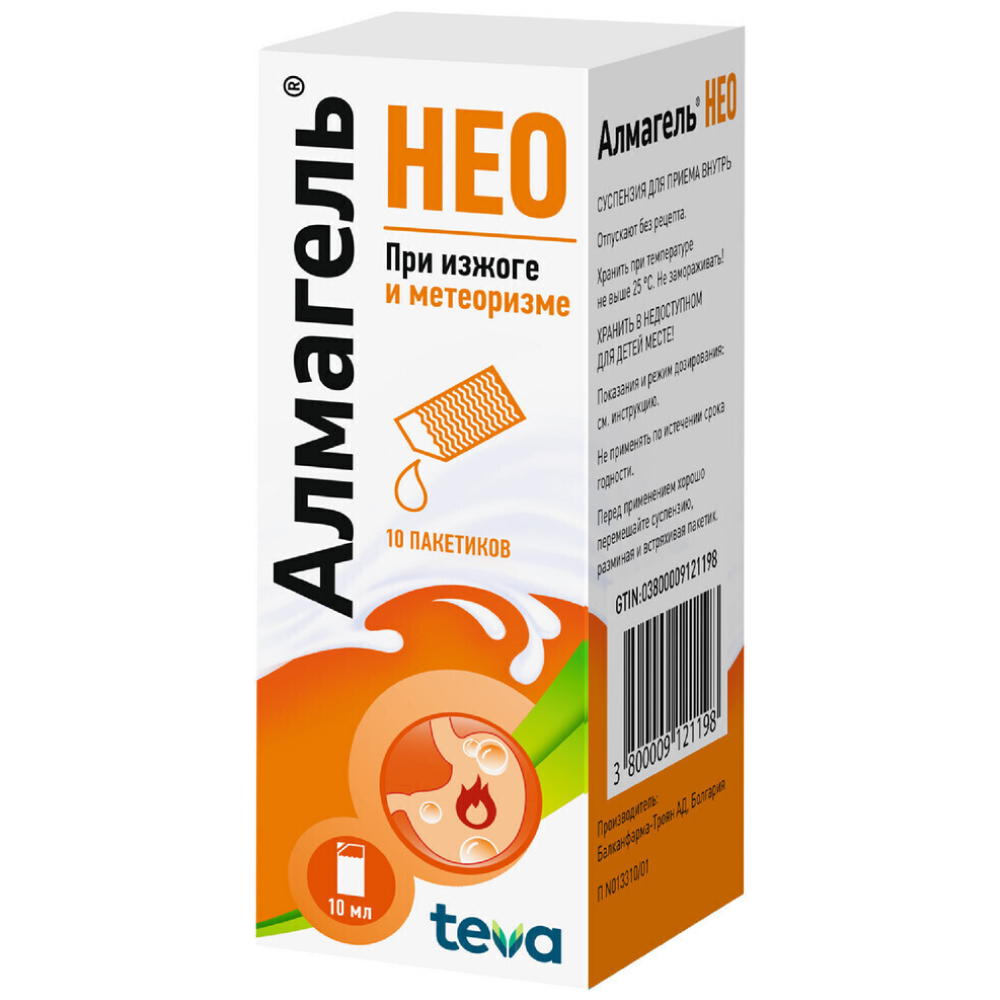 Перед приемом суспензию необходимо гомогенизировать, встряхивая флакон или разминая и встряхивая пакетик. Желательно принимать Алмагель® Нео в неразведенном виде. Не рекомендуется прием жидкости в течение получаса после приема препарата.