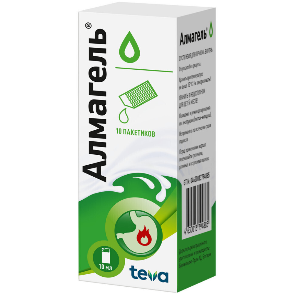 Может адсорбировать некоторые лекарственные средства, уменьшая, таким образом, их всасывание. Поэтому при одновременном применении других лекарственных средств, необходимо соблюдать интервал 1-2 ч между приемами препарата Алмагель® и другими средствами.