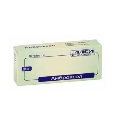 Одна таблетка содержит: активное вещество:амброксола гидрохлорид — 30 мг; вспомогательные вещества: лактозы моногидрат (сахар молочный) — 171,0 мг, крахмал картофельный — 36,0 мг, кремния диоксид коллоидный (аэросил) — 1,8 мг, магния стеарат — 1,2 мг.