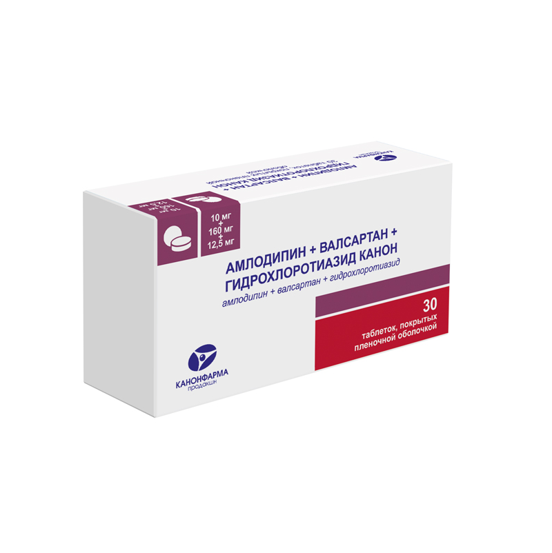 Амлодипин + Валсартан + Гидрохлоротиазид Канон 10 мг + 160 мг + 12,5 мг 30 шт таблетки покрытые пленочной оболочкой ⭐ купить дешево в онлайн-аптеке Таблетка.ру (Ваша №1) | Москва и Московская область