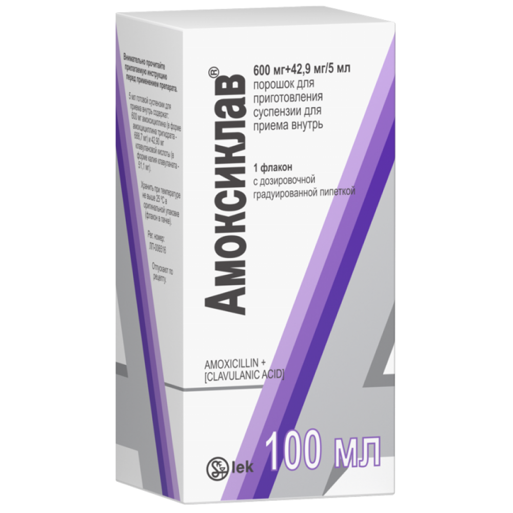 Действующие вещества: амоксициллин - 600 мг, клавулановая кислота (в форме калиевой соли) - 42.9 мг.