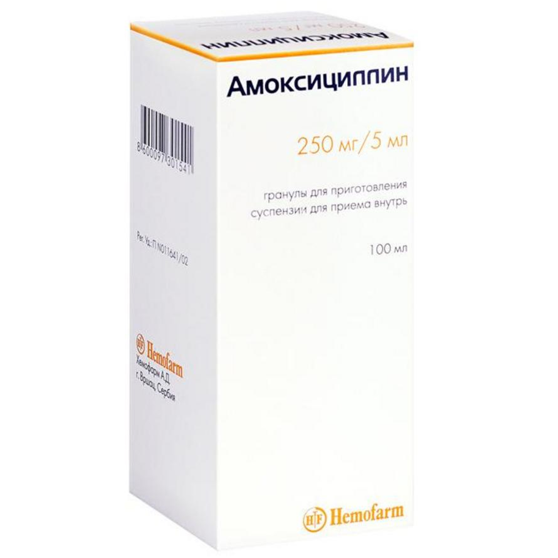 5 мл приготовленной суспензии (1 мерная ложка) содержат 250 мг амоксициллина.