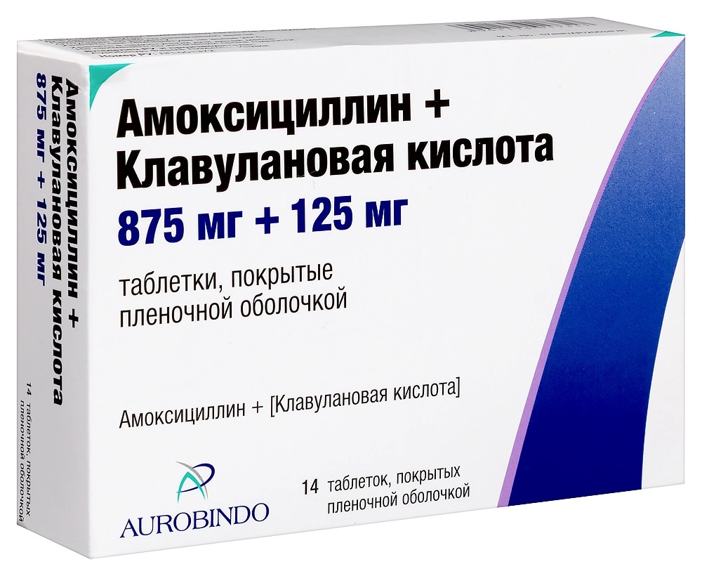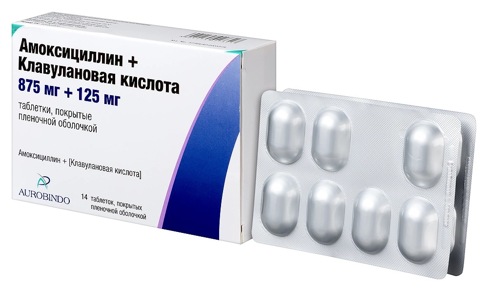 -1 таблетка 500 мг + 125 мг в один прием каждые 24 ч.