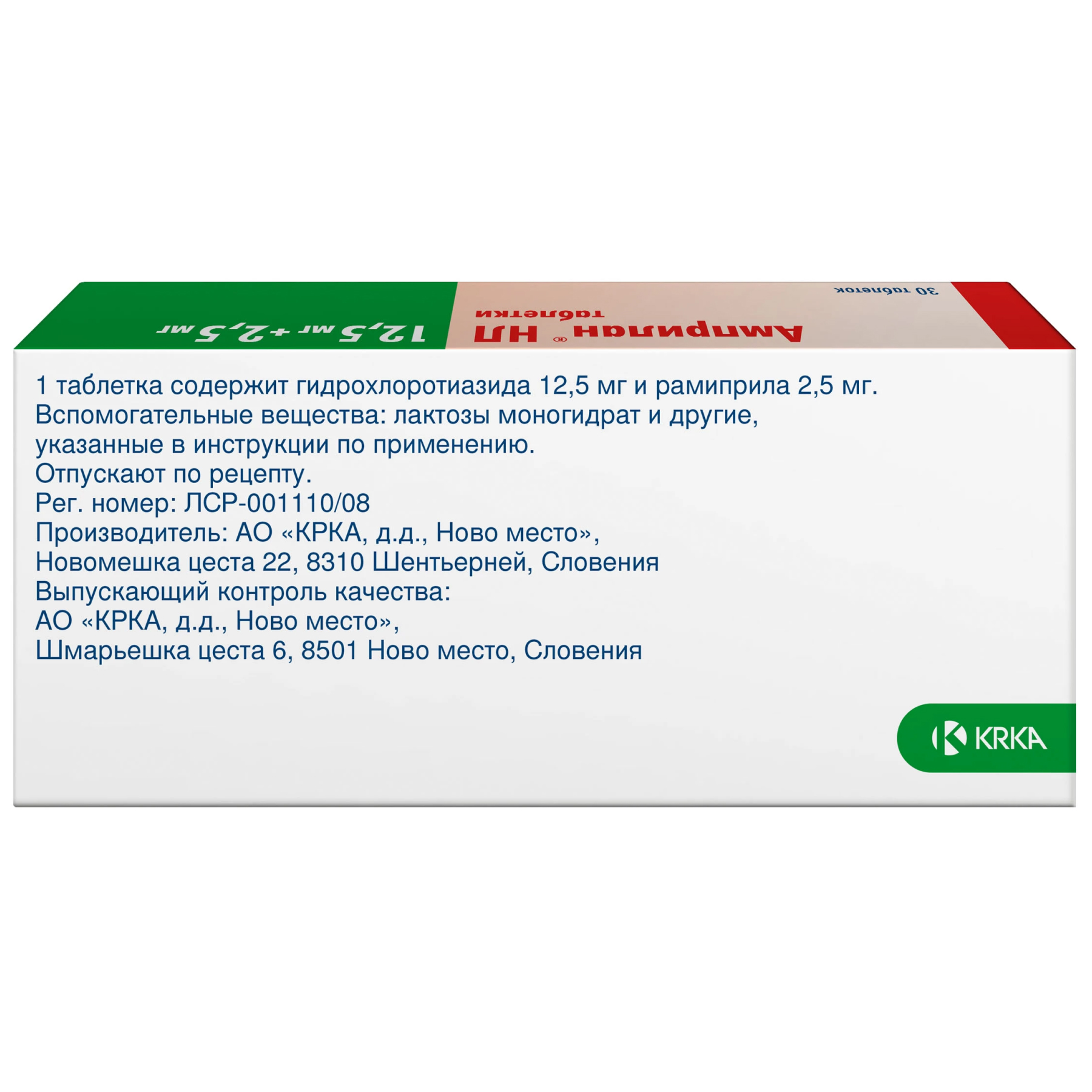 Действующие вещества: гидрохлоротиазид 12,5 мг, рамиприл 2,5 мг