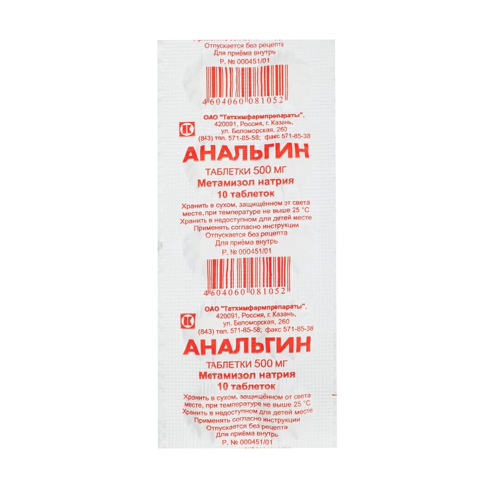Активное вещество: метамизол натрия (анальгин) 500 мг.