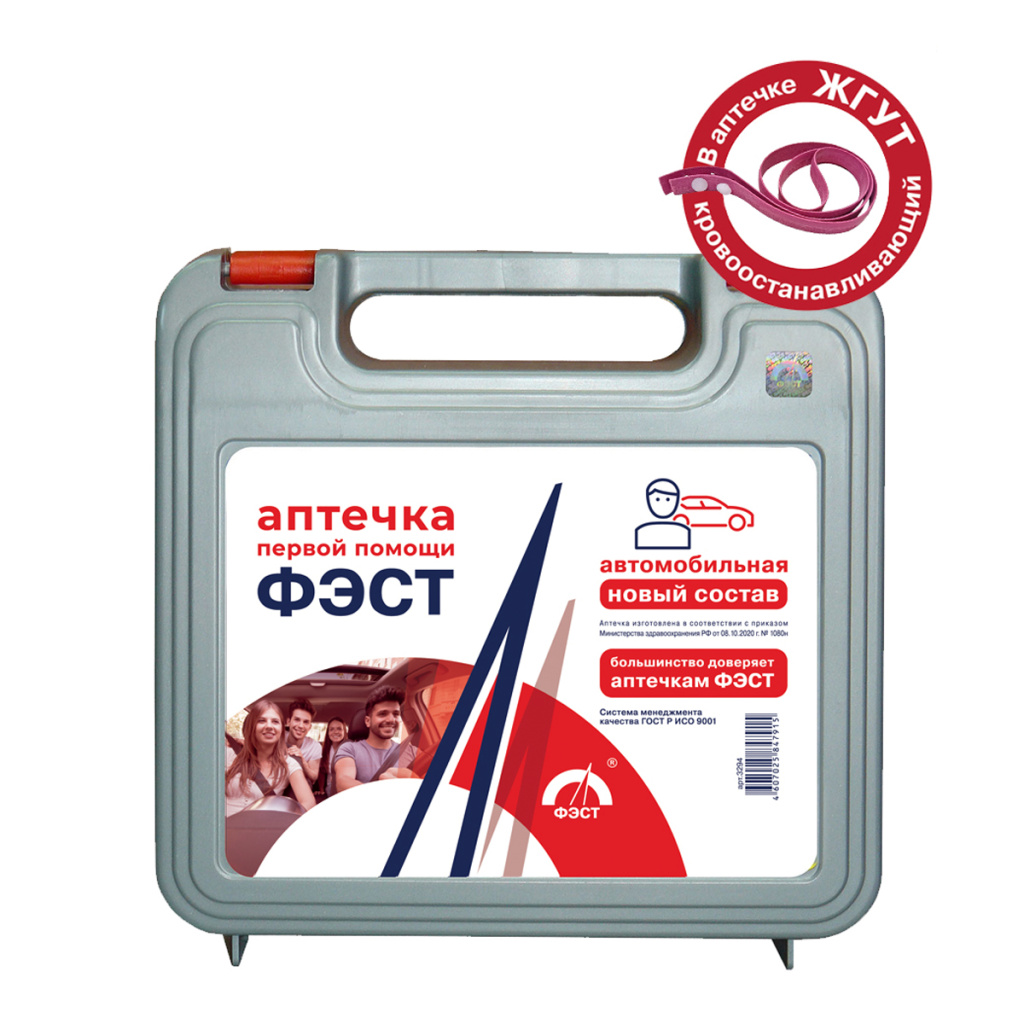 Аптечка автомобильная ФЭСТ используется для комплектации личных, коммерческих и грузовых автомобилей, совершающих поездки по территории РФ, с целью своевременного оказания первой домедицинской само- и взаимопомощи. Автомобильная аптечка ФЭСТ содержит все необходимые вложения, согласно приказу Министерства здравоохранения РФ от 08.10.2020 года №1080н.