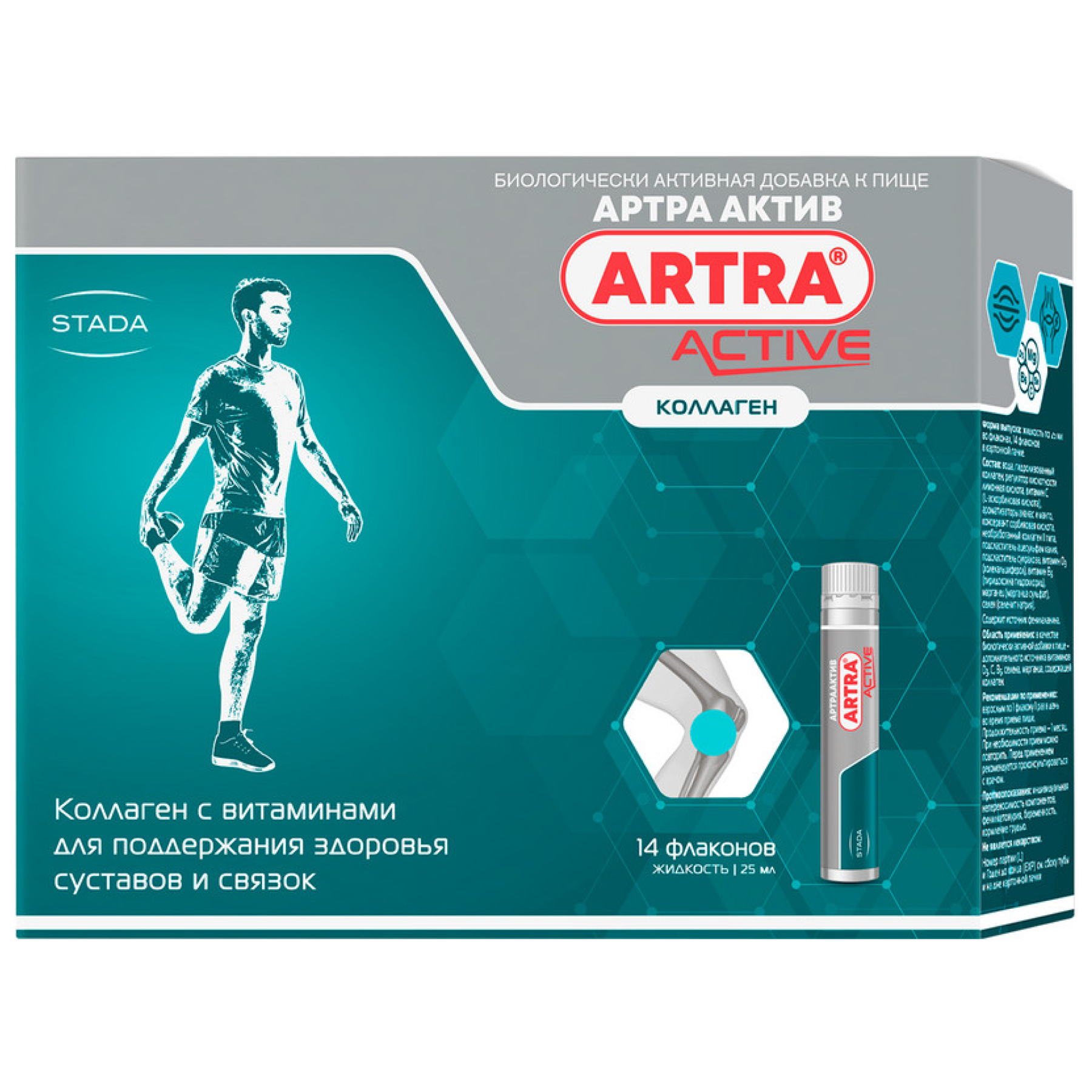 АРТРА АКТИВ - Биологически активная добавка (БАД) к пище - жидкая форма коллагена с витаминами для поддержания здоровья суставов и связок.