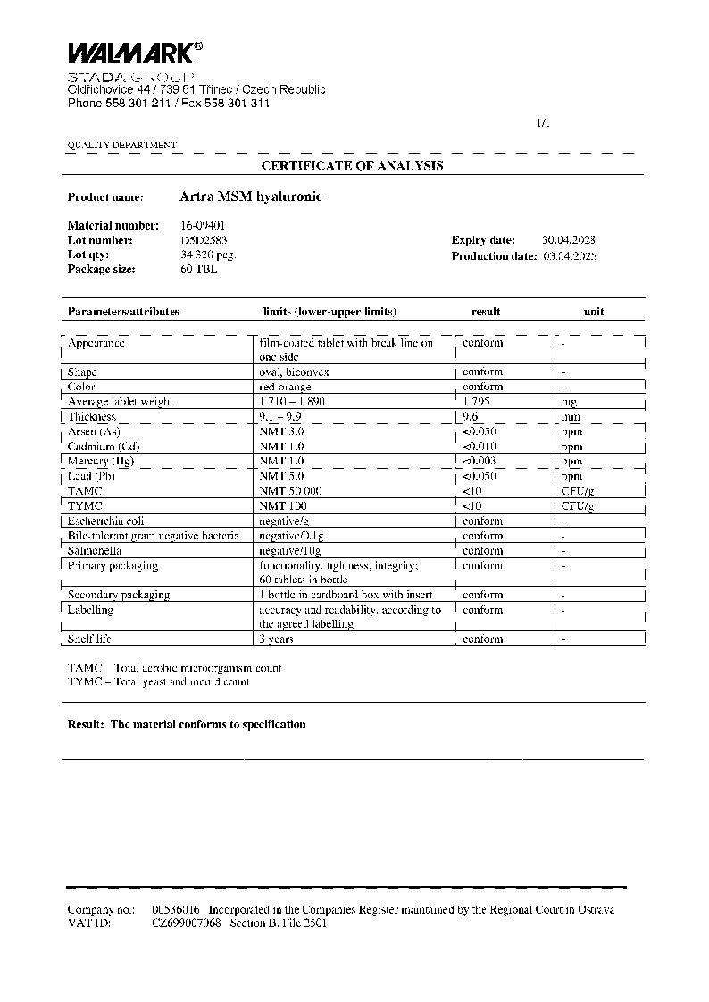 Состав: D-глюкозамина гидрохлорид, хондроитина сульфат, агент антислеживающий целлюлоза микрокристаллическая, метилсульфонилметан, оболочка таблетки (стабилизатор гидроксипропилметилцеллюлоза, агент антислеживающий тальк, cтабилизатор гидроксипропилцеллюлоза, концентраты сафлора и лимона, пеногаситель стеариновая кислота, стабилизатор полиэтиленгликоль, краситель кармины, краситель оксид железа желтый), стабилизатор карбоксиметилцеллюлоза натриевая соль кроссвязанная, агент антислеживающий магниевая соль стеариновой кислоты, гиалуронат натрия, агент антислеживающий диоксид кремния аморфный.