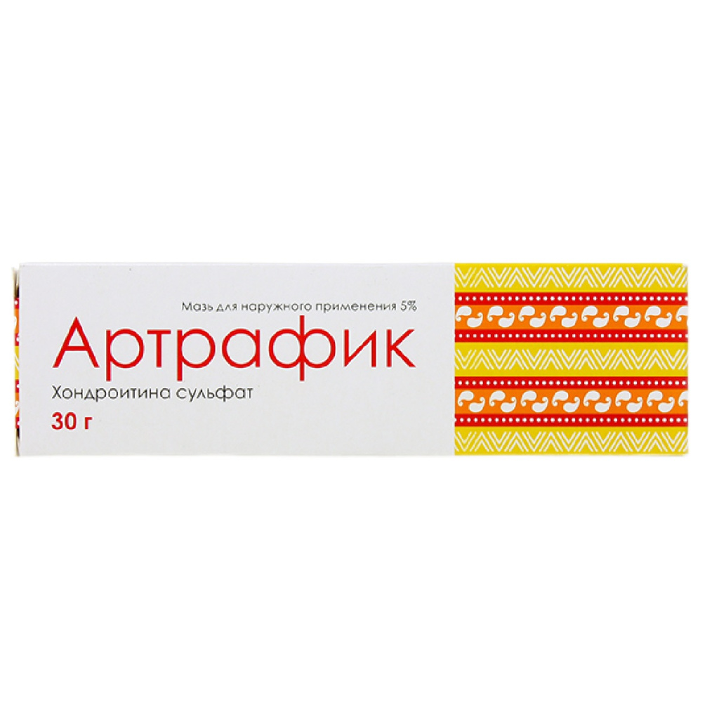 Артрафик содержит натуральный компонент хондроитина сульфат (высокомолекулярный мукополисахарид), получаемый из тканей крупного рогатого скота.