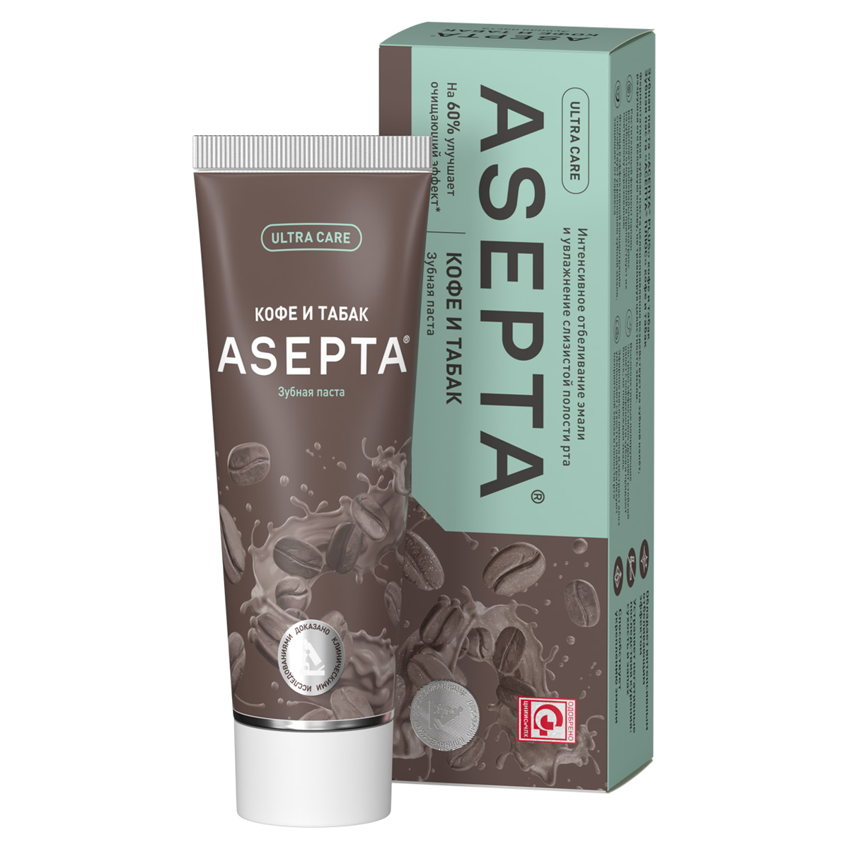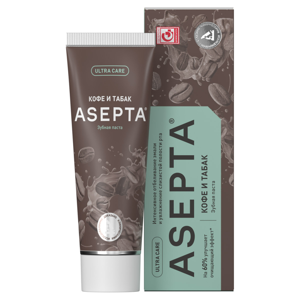 Asepta 75 мл паста зубная интенсивное отбеливание кофе-табак