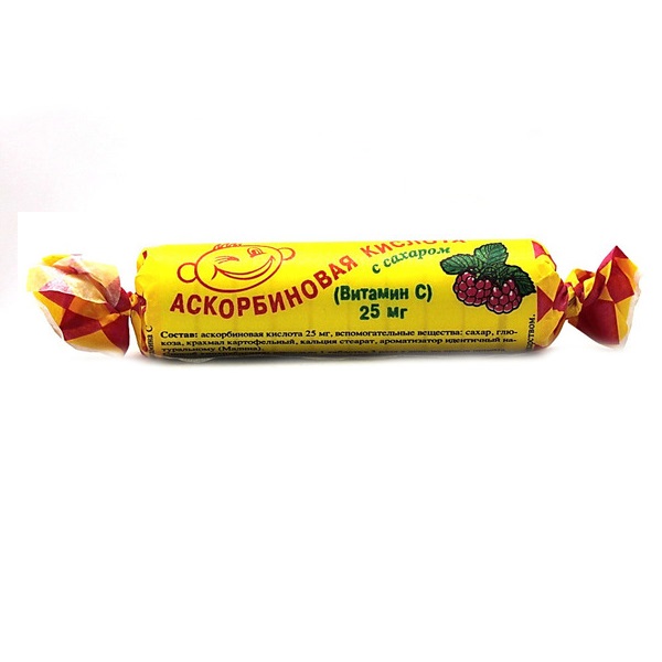 Аскорбиновая кислота с сахаром 25 мг 10 шт таблетки
