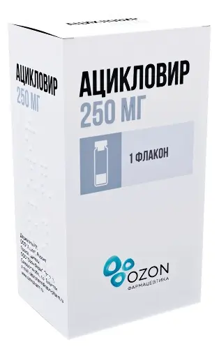 Действующее вещество: ацикловир - 250,0 мг.