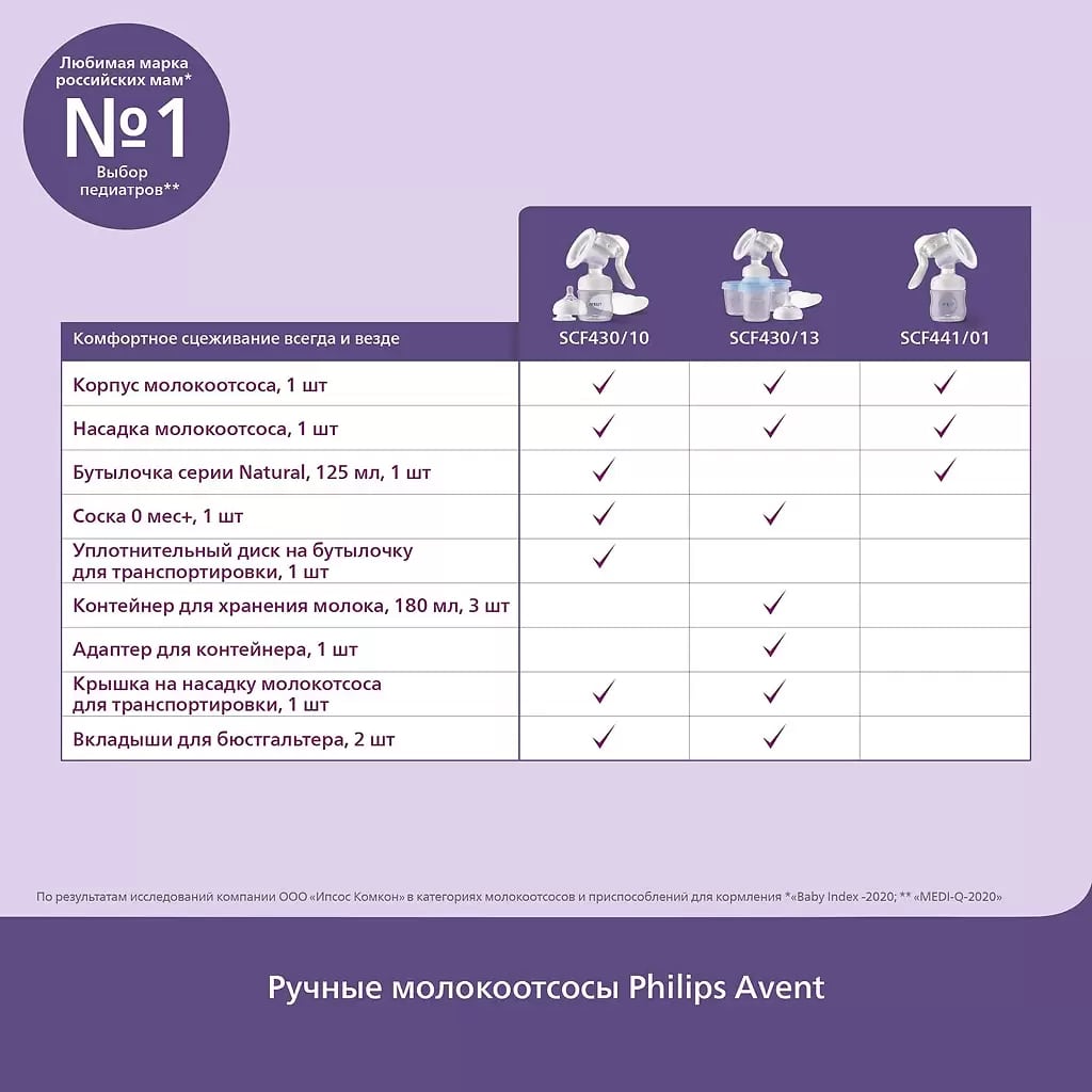 Ручной молокоотсос Philips Avent разработан с учетом понимания принципов сосания ребенка, размеров и форм груди, поэтому обеспечивает естественное и бережное сцеживание. Универсальная насадка молокоотсоса адаптируется под любую форму и размер соска и подходит 99% мам¹.