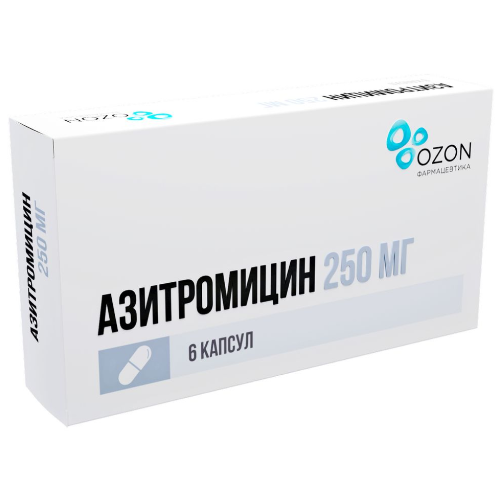 Активное вещество: азитромицин - 250 мг.