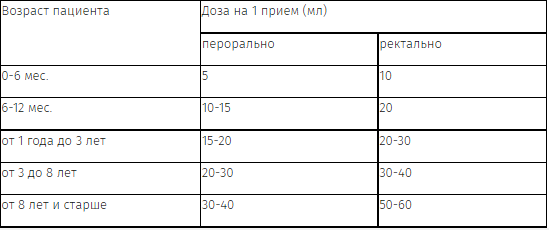 При дизентерии, характеризующейся слабовыраженным колитическим синдромом, и в период реконвалесценции рекомендуется сочетание двукратного приема внутрь с однократным ректальным введением разовой возрастной дозы препарата в виде клизмы после опорожнения кишечника.